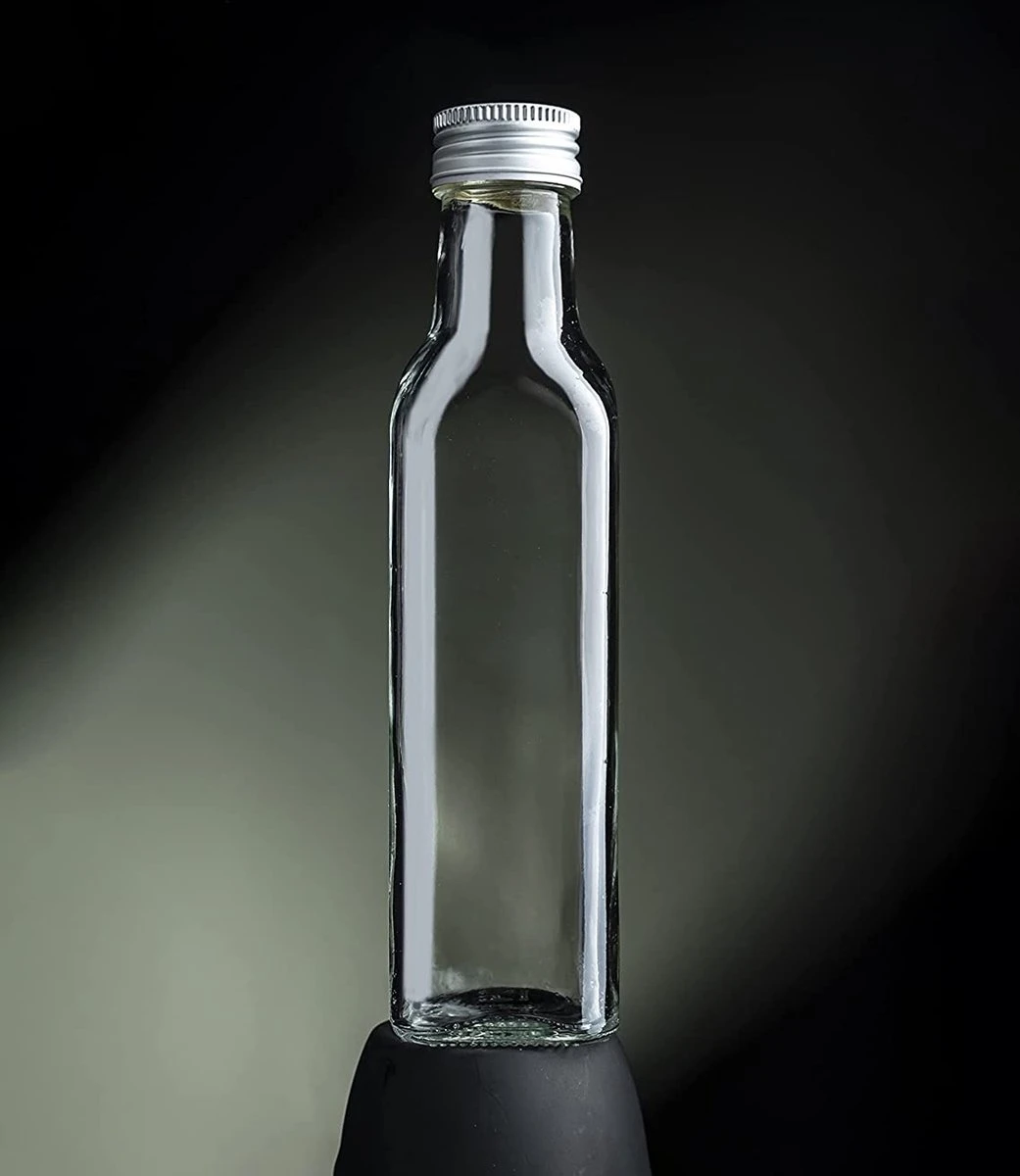 - Flacon de 250 ml hauteur 21,20 cm ouverture 31,5 largeur 4,8 cm poids 250 grammes Maraska bouchon à vis compris