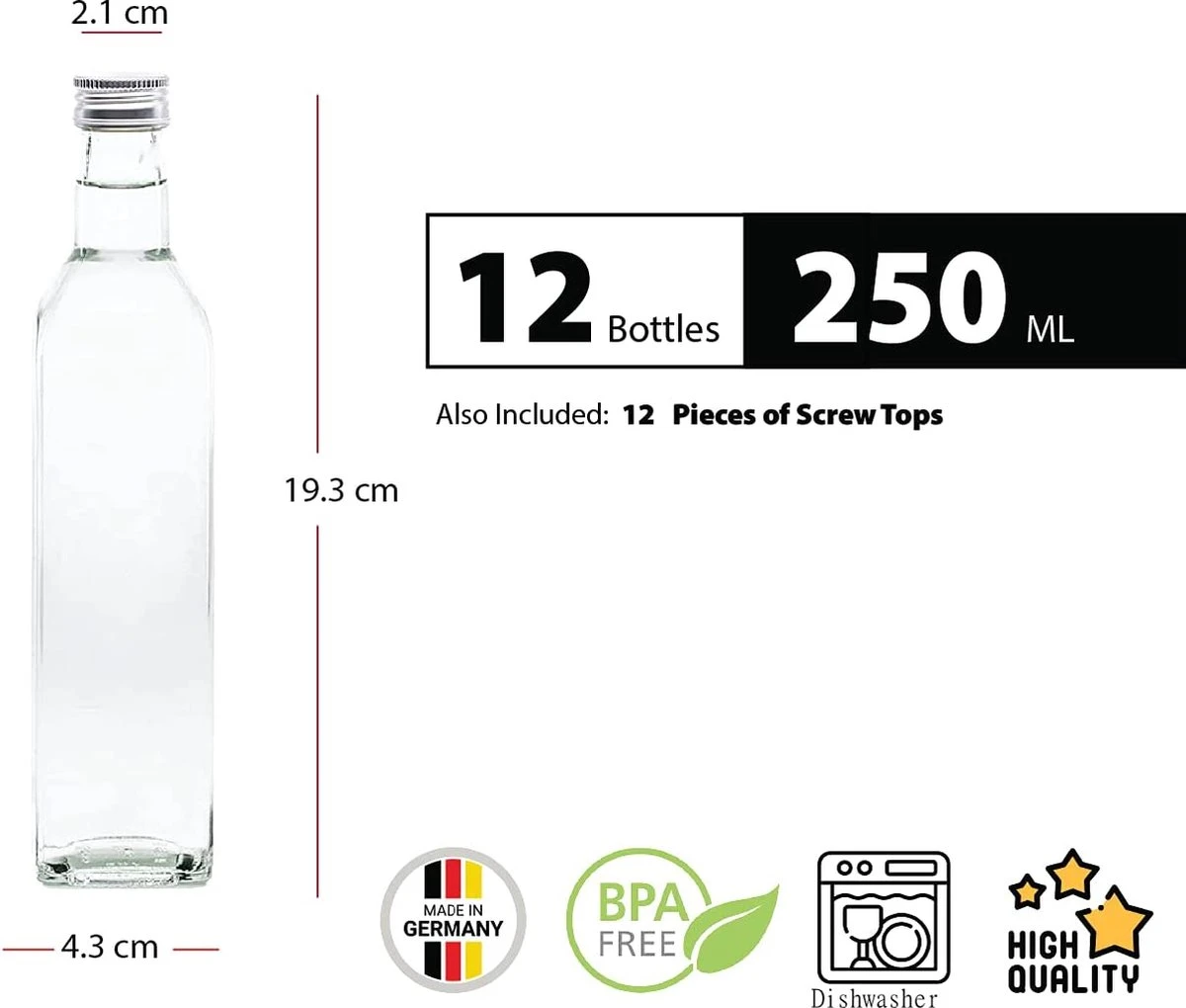 12 Bouteilles En Verre Vides Bouteilles MAR De 250 Ml Avec Bouchon Petites Bouteilles De Liqueur Bouteilles De Genièvre Bouteilles De Jus Bouteille Bouteille Auto-remplissante N° 200