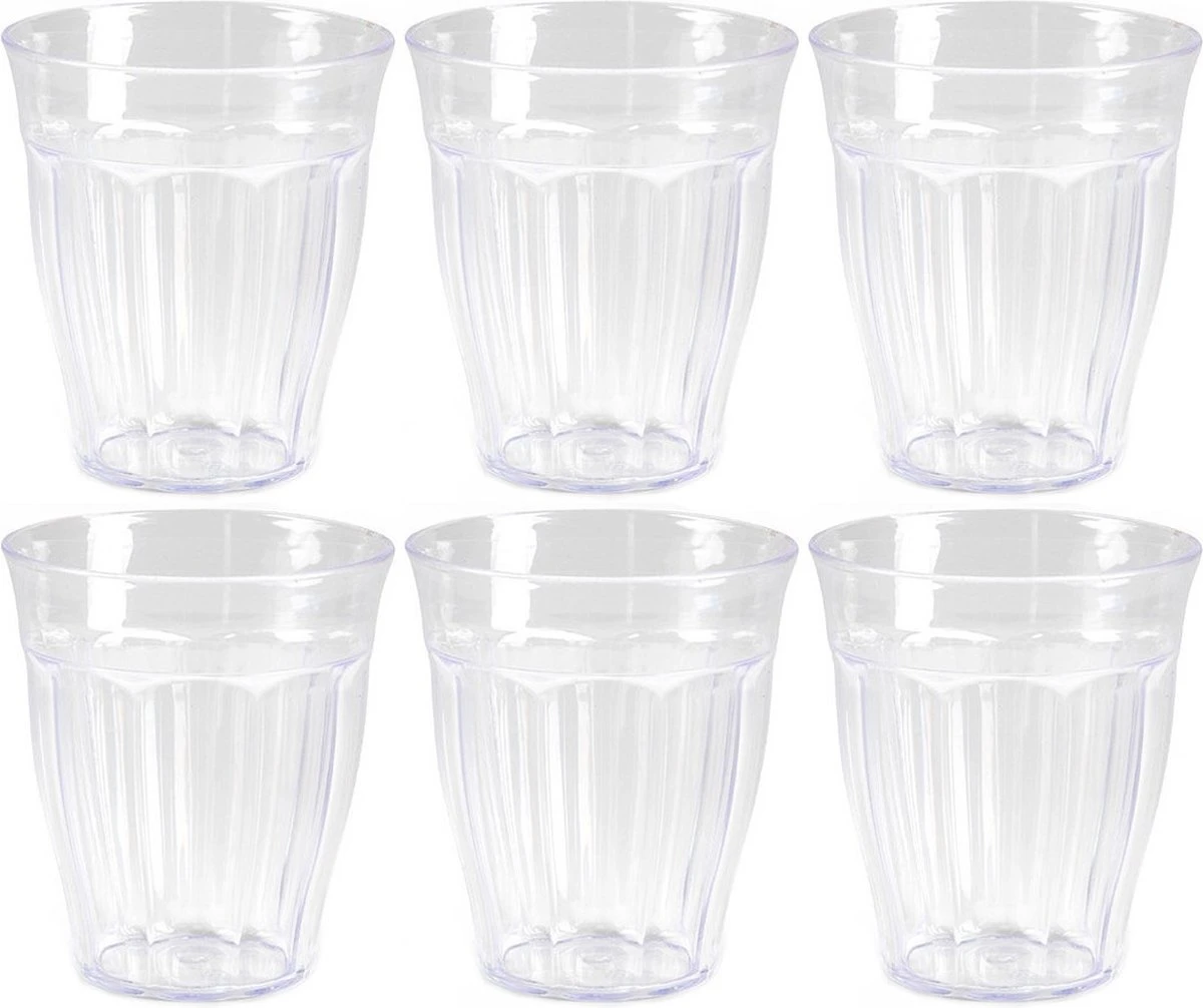 24x Verres de camping incassables en plastique Picardie transparent 250 ml. Les verres sont en plastique transparent solide et donc idéal pour une utilisation par les enfants et / ou au camping ou lors d’un pique-nique. Les verres Picardie ont un design intemporel et ergonomique et sont empilables, ils prennent donc peu de place dans le placard de cuisine. Dimensions par verre: environ 8 x 8 x 9 cm. Contenu par verre : 250 ml. Lave-vaisselle. Verres à boire/verres à eau.