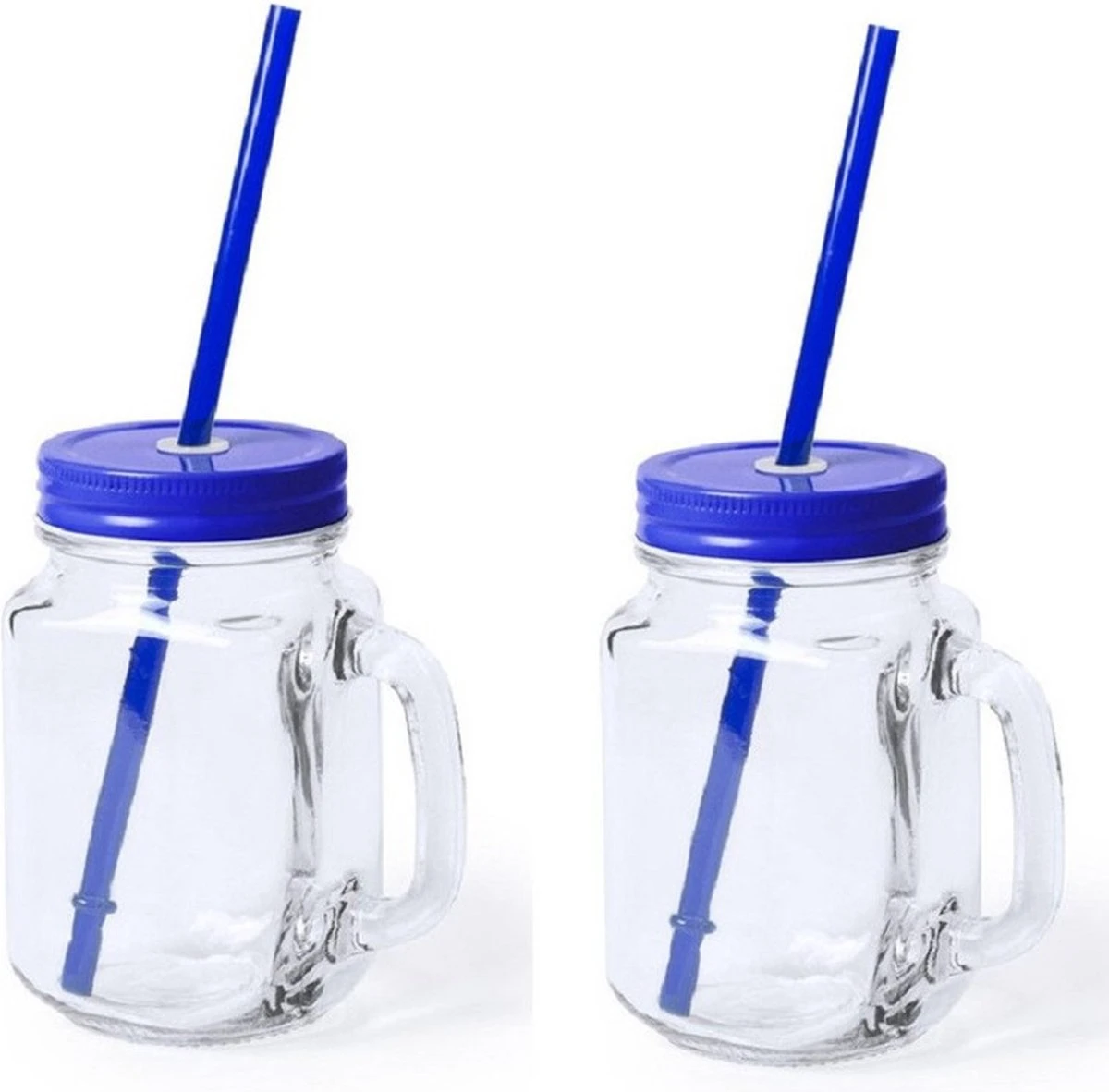 2x Pcs Verres Mason Jar Tasses à Boire Bouchon Bleu Et Paille 500 Ml – Scellable / Non étanche / Fruits Secoue