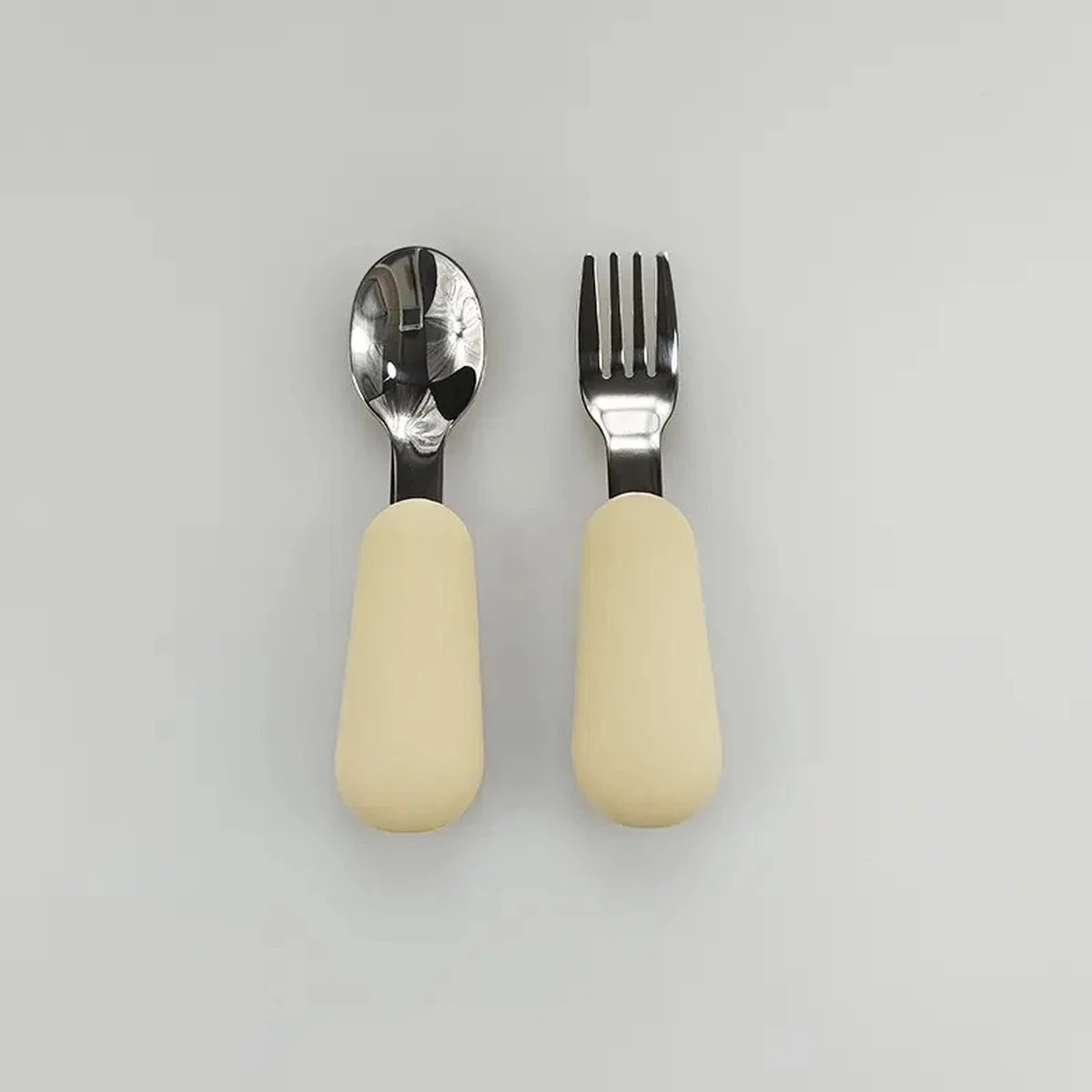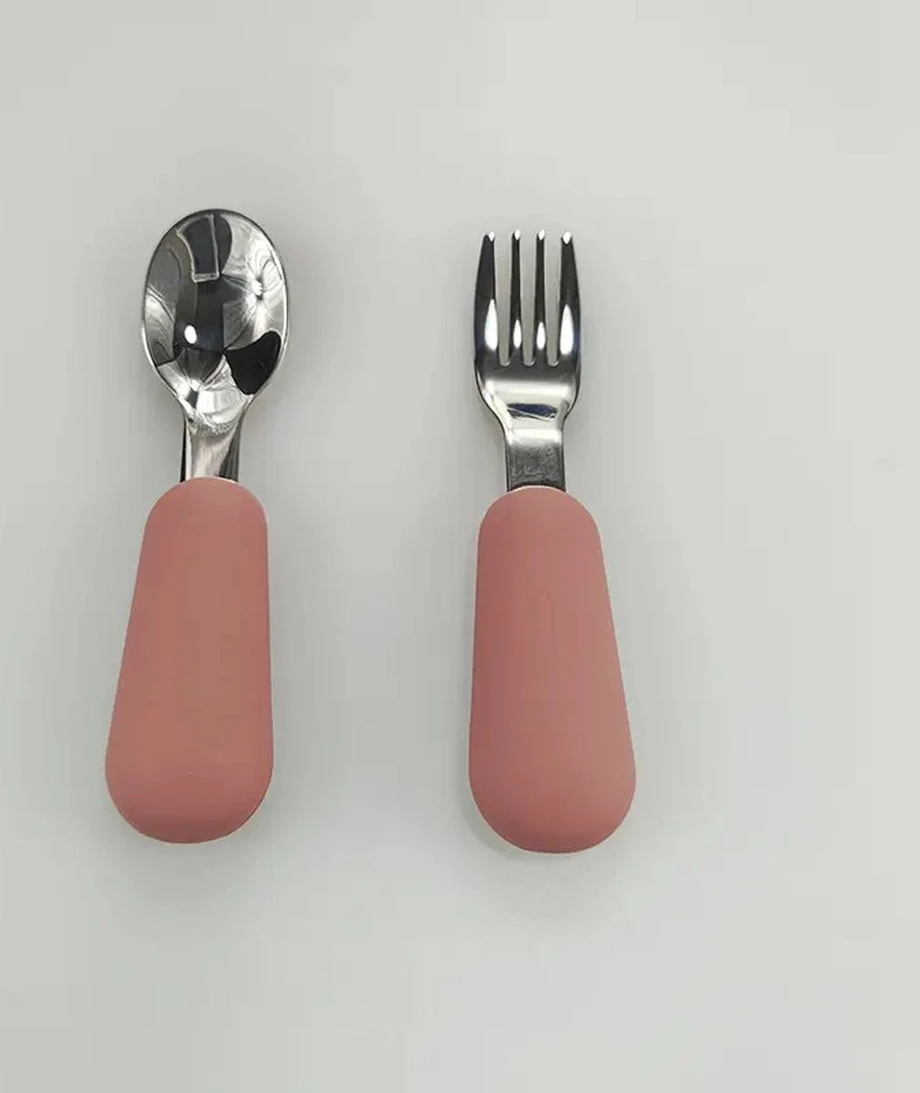 3 Sets – Couverts Bébé – Fourchette Et Cuillère – Set De Couverts Enfant – Beige Rose