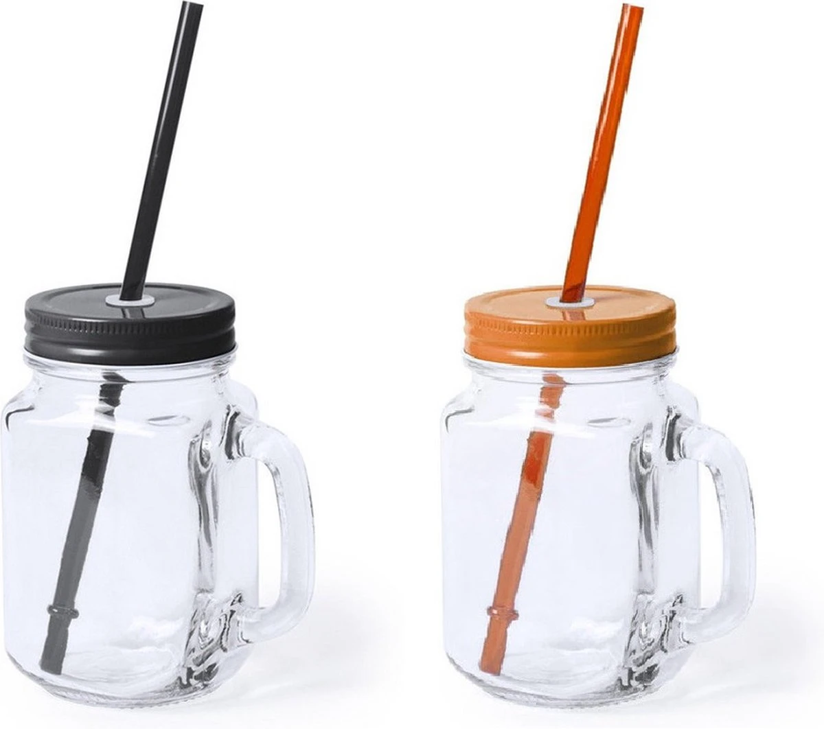 4x Pcs Verre Mason Jar Gobelets Avec Bouchon Et Paille 500 Ml – 2x Noir / 2x Orange – Scellable / Pas De Fuite / Fruits Secoue