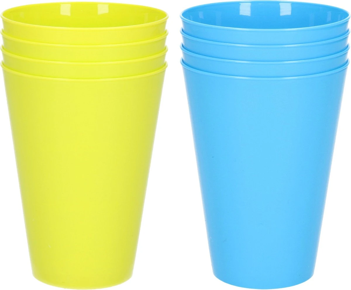 8x Verres à Boire En Plastique Incassables 430 ML En Bleu Et Vert – Camping / Anniversaire / Tout-petits / Enfants D’âge Préscolaire