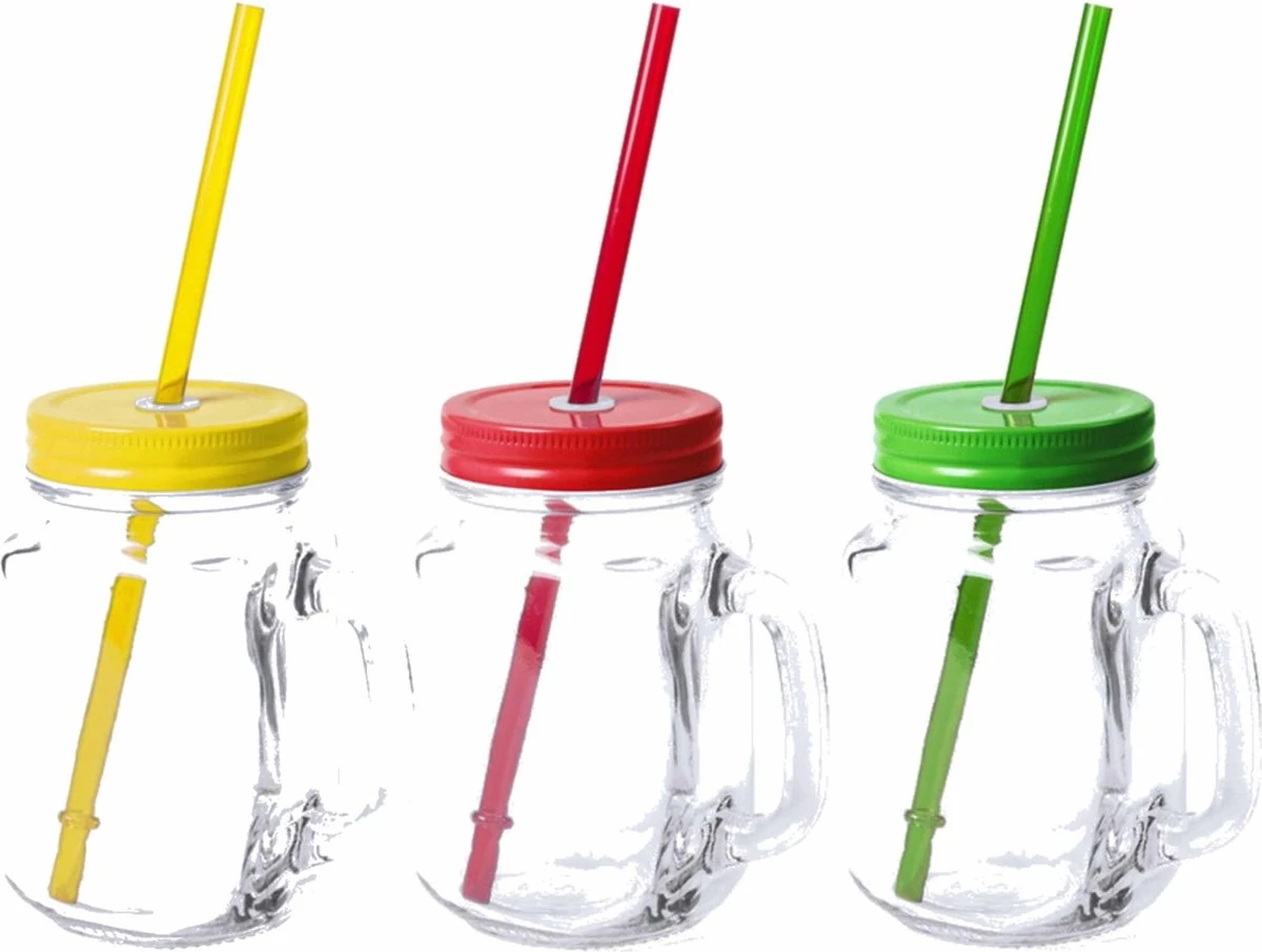 9x Pcs Verres Mason Jar Gobelets Avec Bouchon Et Paille 500 Ml – 3x Jaune / 3x Vert / 3x Rouge – Verrouillable / Pas De Fuite / Fruits Secoue