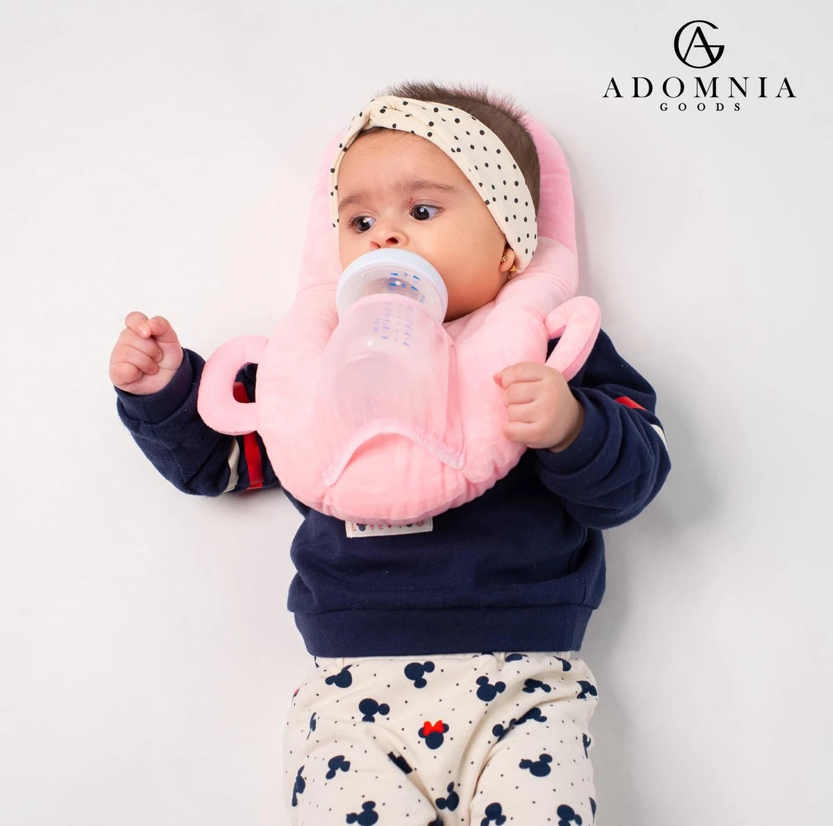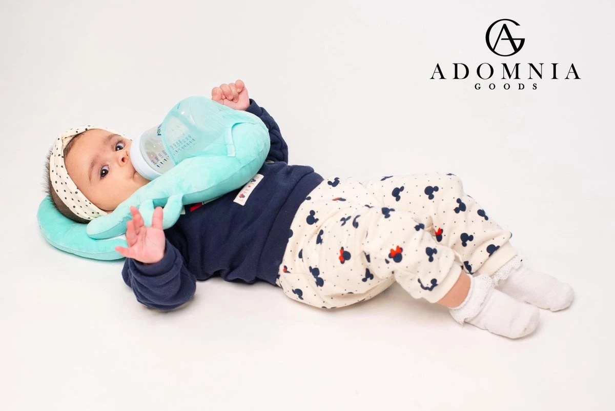 L’ kussen a des poignées pratiques sur le côté que le bébé peut saisir, de sorte que l’ kussen reste au bon endroit et que votre bébé puisse facilement tenir le biberon. Le corps principal se compose d’un kussen moelleux, de sorte que la pression de la tête est uniformément répartie sur l’ kussen. Le cou de votre bébé est dans la bonne position et le biberon est toujours plus haut que la tête du bébé, ce qui incline automatiquement le biberon.