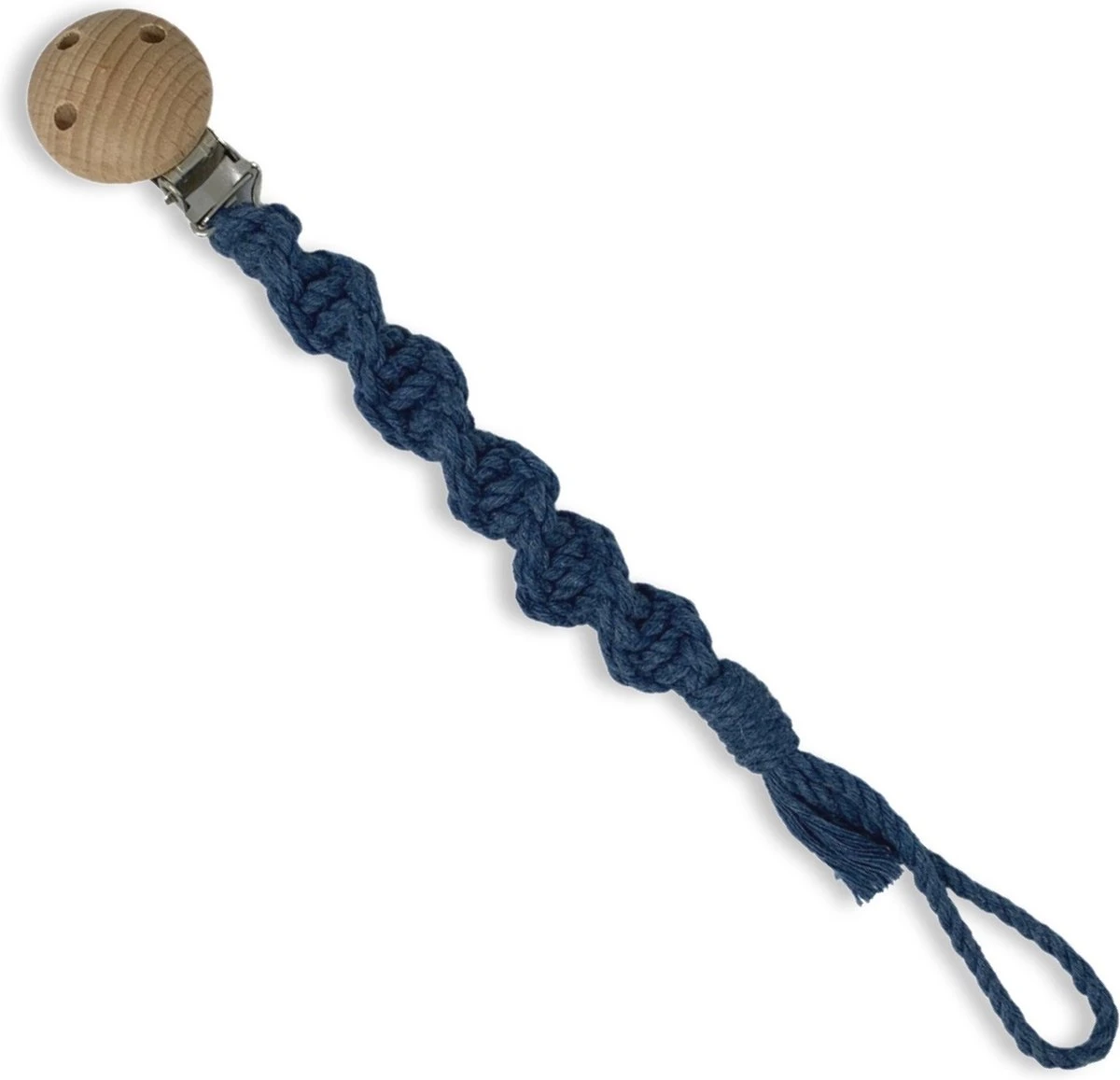 Cette attache-tétine macramé faite à la main en cordon de coton bleu pétrole noué à la main est idéale comme cadeau (de maternité). Le nœud en spirale du cordon triple torsion et le clip en bois non traité donnent un aspect robuste. Le cordon convient aux bébés à partir de 0 mois et répond à la norme de sécurité européenne NEN.