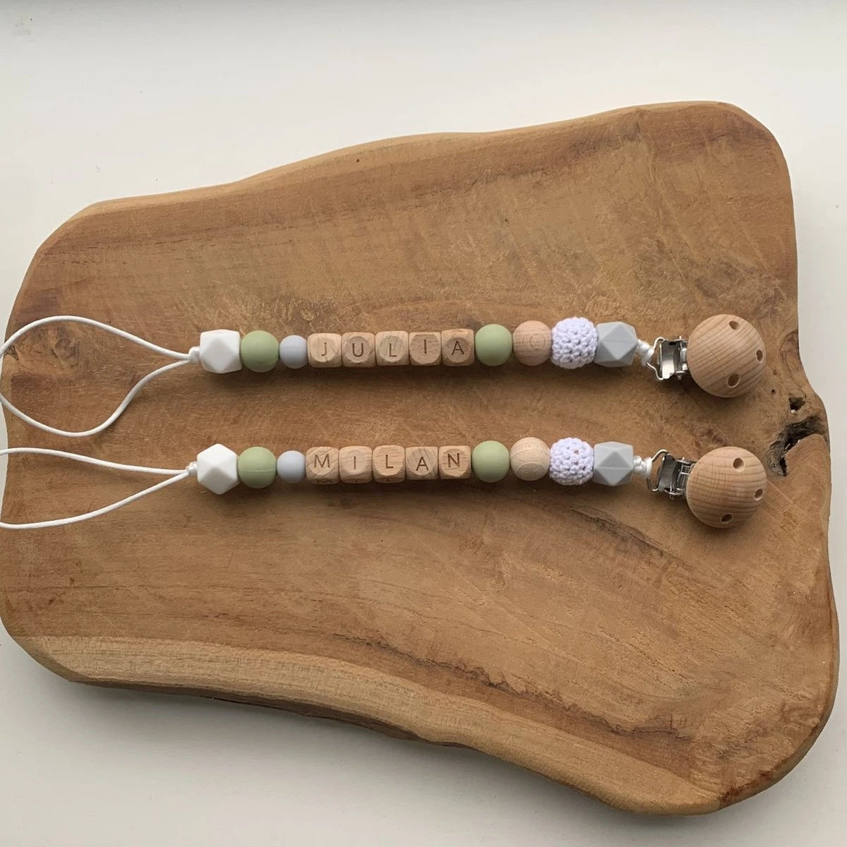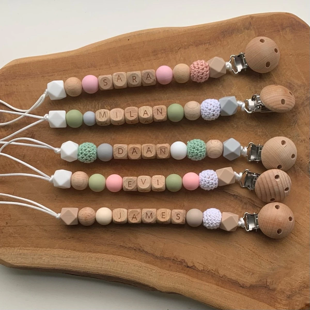· Nous fabriquons les attaches tétines avec une longueur maximale de 8 lettres.