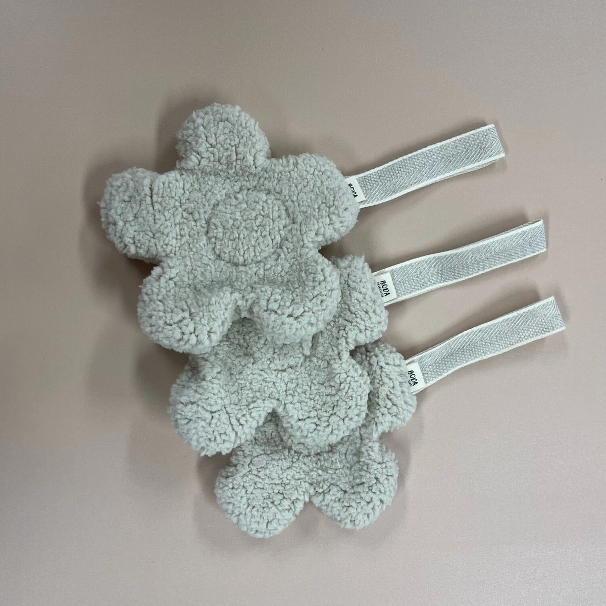 La tétine a la forme d’une marguerite. Il y a un ruban en haut, vous pouvez facilement y attacher la tétine.