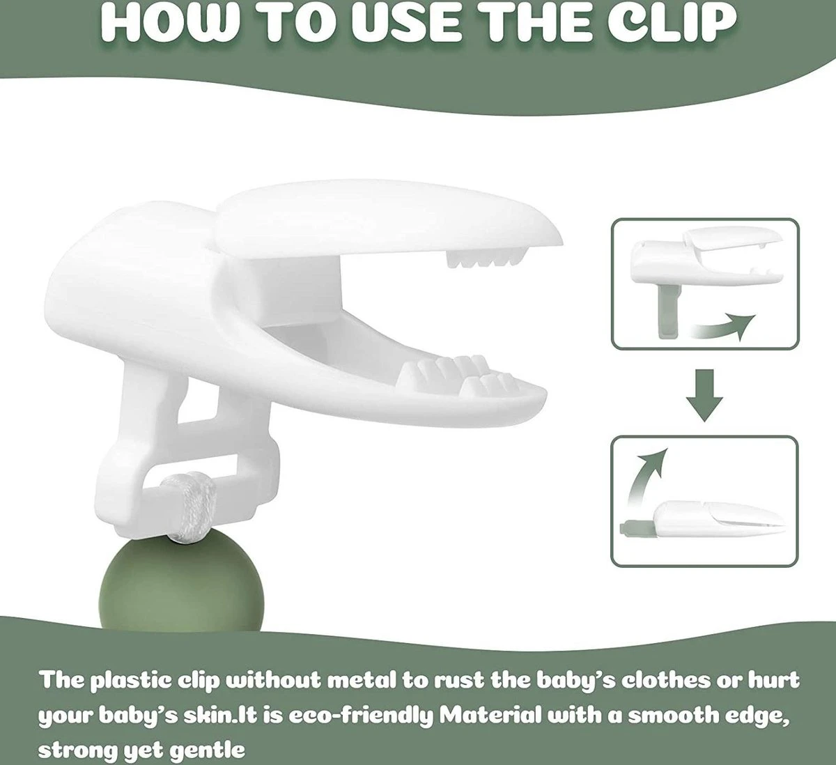• Support factice léger : le clip de fixation était petit et fait de plastique, plutôt que les clips métalliques larges ou plus courants. Votre bébé adorera cette attache-sucette qui ne fatiguera pas les vêtements ou les vêtements.