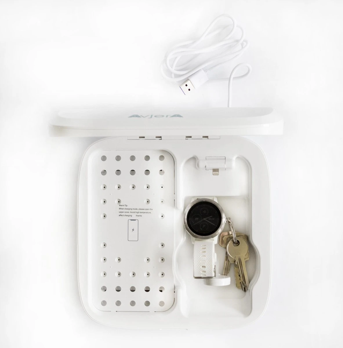 Optez pour l’hygiène et la santé avec le stérilisateur UV Box XL d’ AvjerA. De nombreuses bactéries restent sur les produits que vous utilisez quotidiennement et que vous touchez régulièrement, il est donc important de désinfecter ces articles. Avec la boîte de stérilisateur, vous pouvez désinfecter facilement et rapidement votre téléphone, vos airpods, vos lunettes ou d’autres articles. En plus de la désinfection, cette box permet également de recharger vos appareils en même temps, donc deux oiseaux avec une pierre.