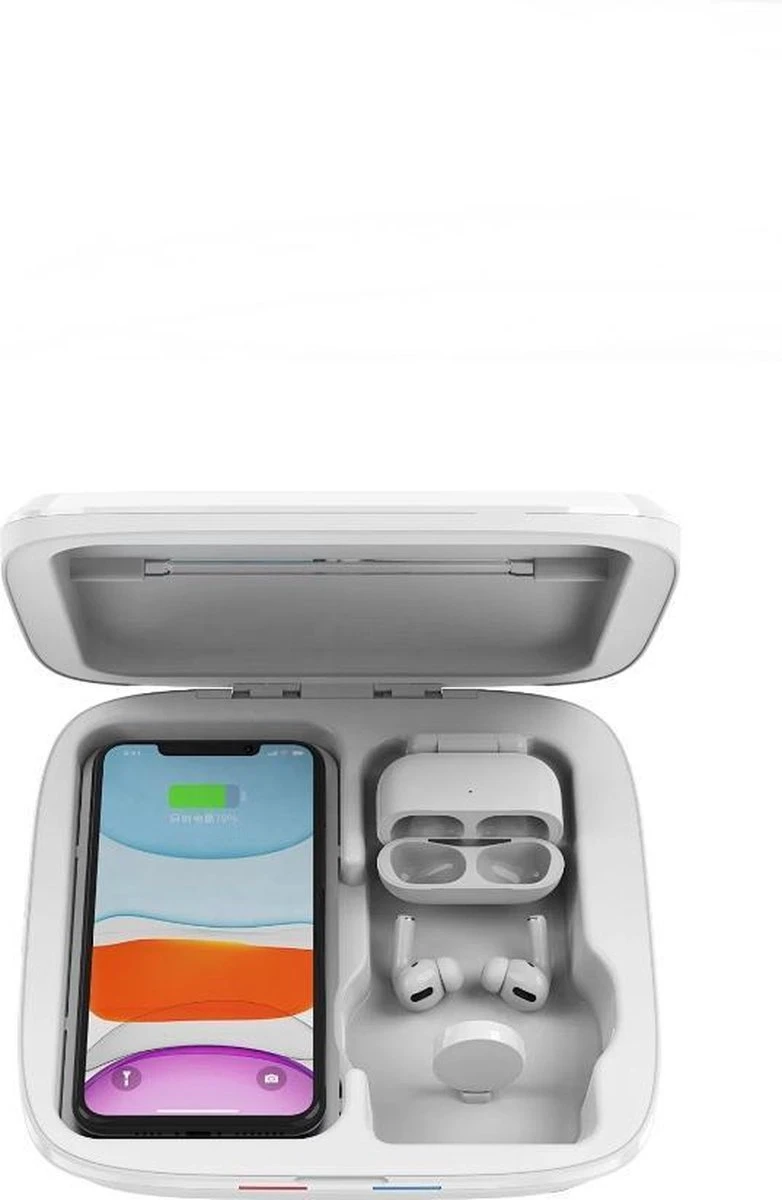 ✔ Chargez et stérilisez simultanément le téléphone, les airpods et le smartwartch