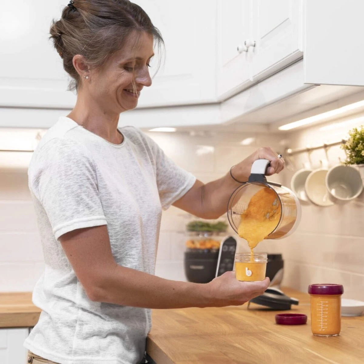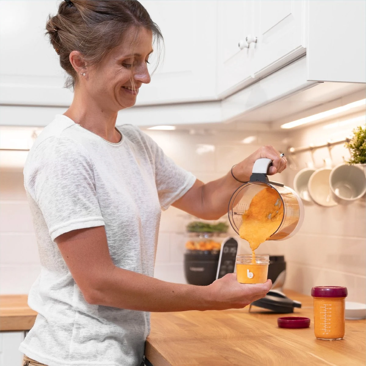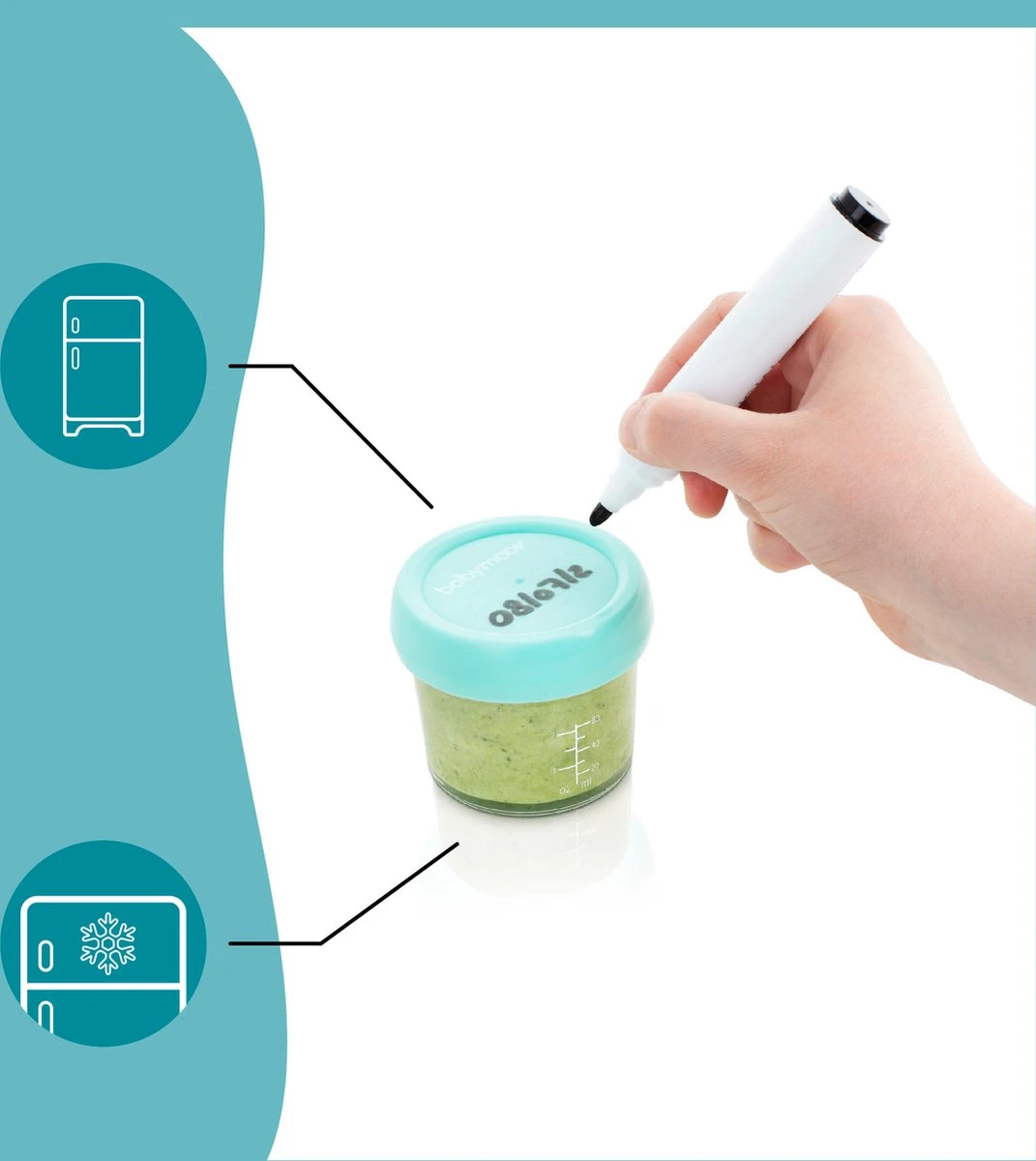 Avec les Babybols en verre, vous pouvez garder les repas de votre bébé sains et faciles. Pourquoi choisir des pots de stockage en verre? Le verre est idéal pour stocker des aliments. C’est un matériau naturel, durable, écologique, neutre et résistant. Les bulbes de bébé en verre gardent le goût des aliments pendant longtemps. Vous avez fait votre propre purée ou compote pour votre enfant. Bien sûr, vous voulez le garder le mieux possible. Ces pots de stockage ont une capacité de 240 ml. Le joint en silicone scelle hermétiquement le couvercle à vis. Les pots ont une graduation en ml et oz et le couvercle a un grand espace inscriptible. Par exemple, vous pouvez facilement noter le plat enregistré et la date de préparation. Les Baby Bulbs sont empilables pour que vous puissiez les placer plus facilement dans le placard, le réfrigérateur ou le congélateur. Les Babybols sont en verre et sont donc résistants à la chaleur. Vous pouvez les réchauffer au micro-ondes (avec le mode de décongélation s’ils sont surgelés), au bain-marie ou dans un chauffe-biberon. Ils sont pratiques au lave-vaisselle et peuvent également être stérilisés. Ces pots de stockage sont particulièrement durables. Ils ne tachent pas au contact des aliments (comme la carotte ou la tomate) et sont recyclables.