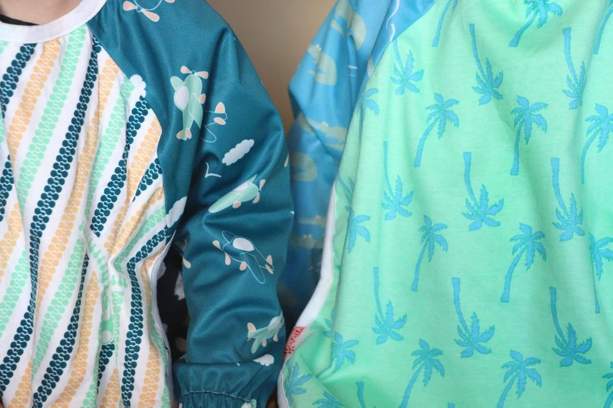 KliederZ vend deux tailles de bavoirs à manches longues en 4 imprimés différents: un S (petit) et un M (moyen). Cet ensemble se compose de deux bavoirs dans le taille S. Cette taille convient généralement (en moyenne) aux enfants entre 6 mois et 2 ans. Comparable à une taille de vêtement entre 62 et 86.