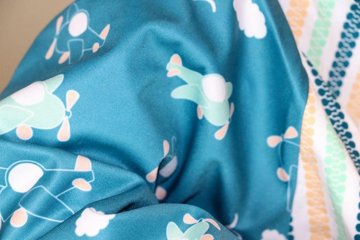 – Matière à l’intérieur et manches: PUL (polyester avec couche laminée)