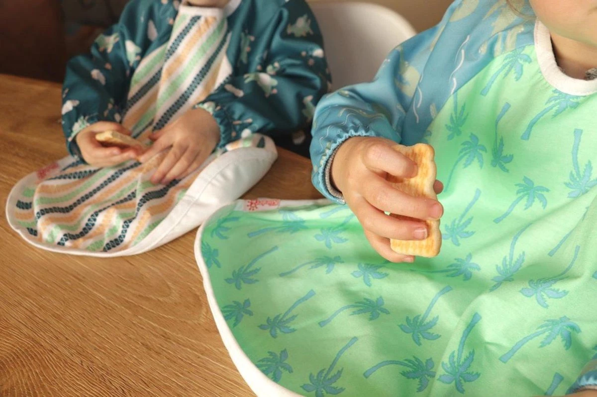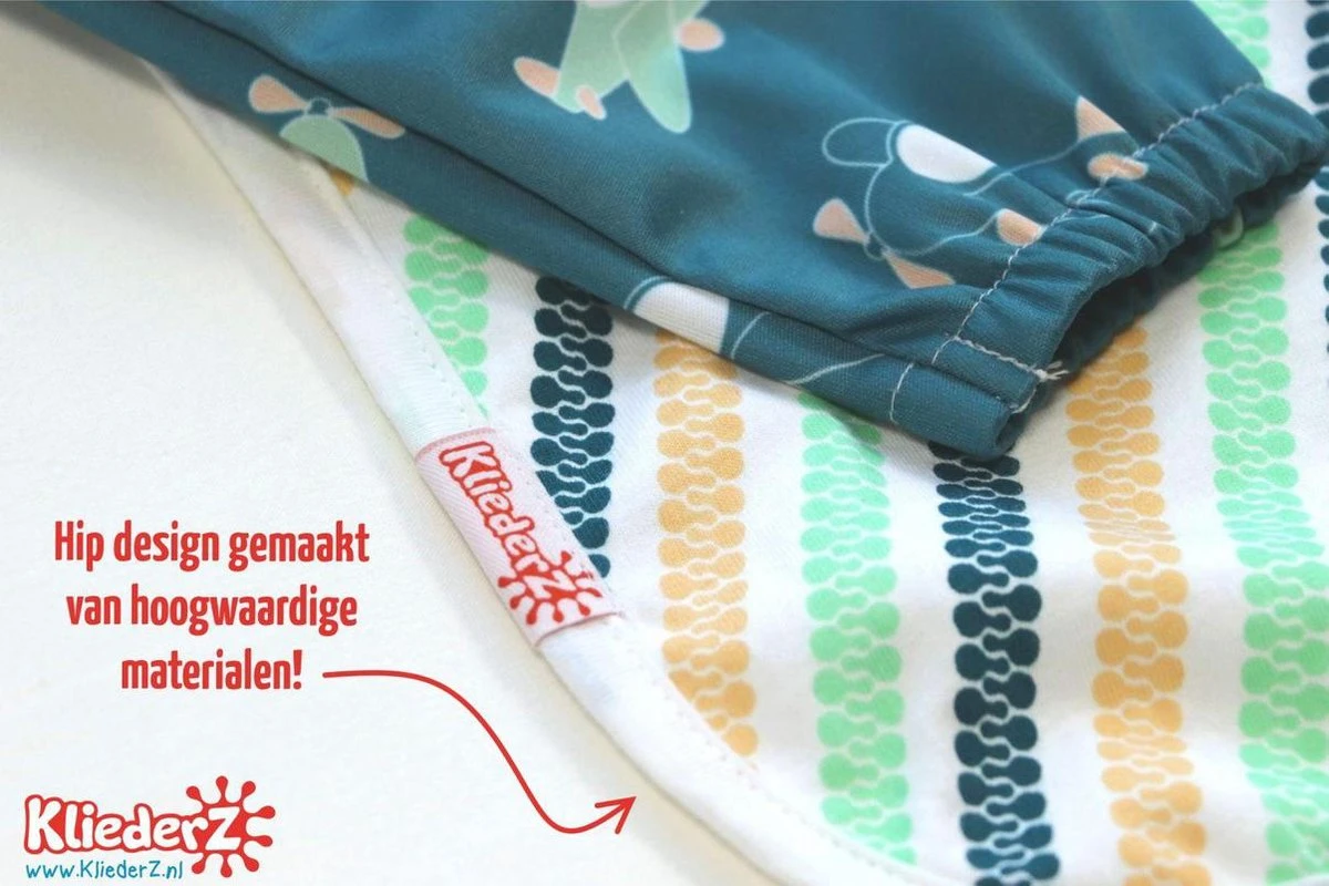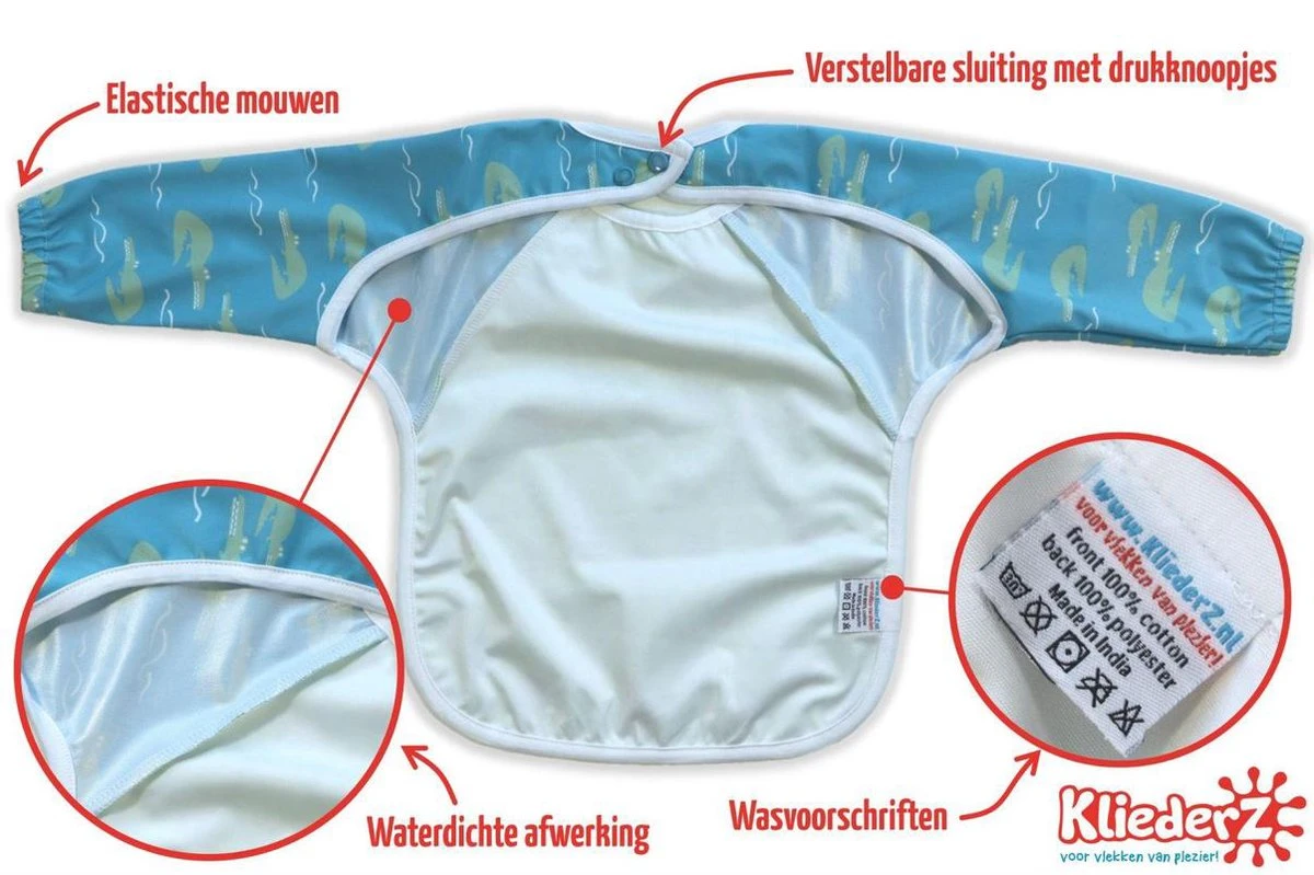 Les bavoirs sont conçus par lui Marque néerlandaise pour enfants KliederZ. KliederZ développe des designs uniques, contemporains et branchés. La partie centrale est en 100% coton biologique avec un joli imprimé. Le dos contient un tissu en polyester hydrofuge. Les manches sont également réalisées dans un tissu polyester déperlant.
