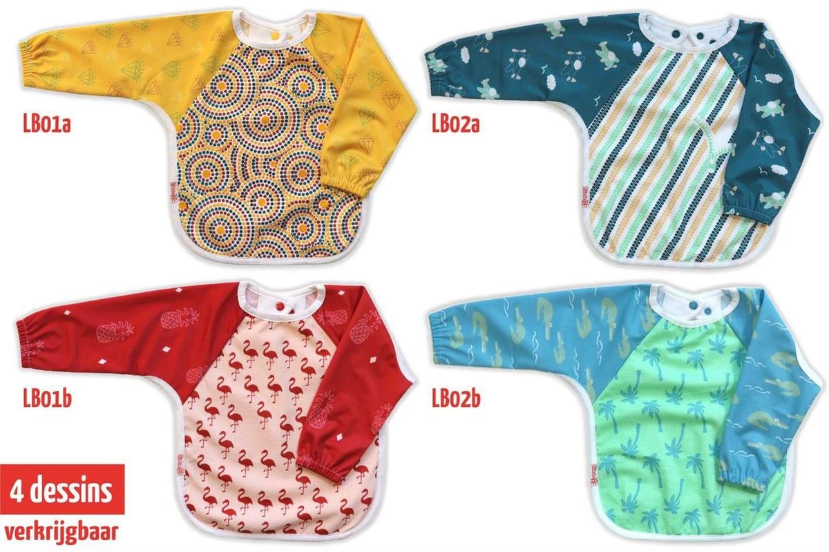 Ces bavoirs à manches longues sont très confortables: un joli modèle long qui va bien. Les différentes positions des boutons-pression garantissent que le bavoir est toujours confortable. Cet ensemble est idéal pour offrir en cadeau comme cadeau de maternité ou anniversaire.