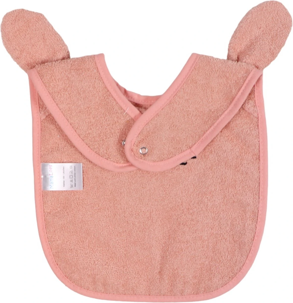 Ce bavoir a un joli dessin de lapin. Donc, ce n’est pas seulement pratique, mais aussi très joli ! Vous attachez le plastron avec les boutons pression dans le cou.