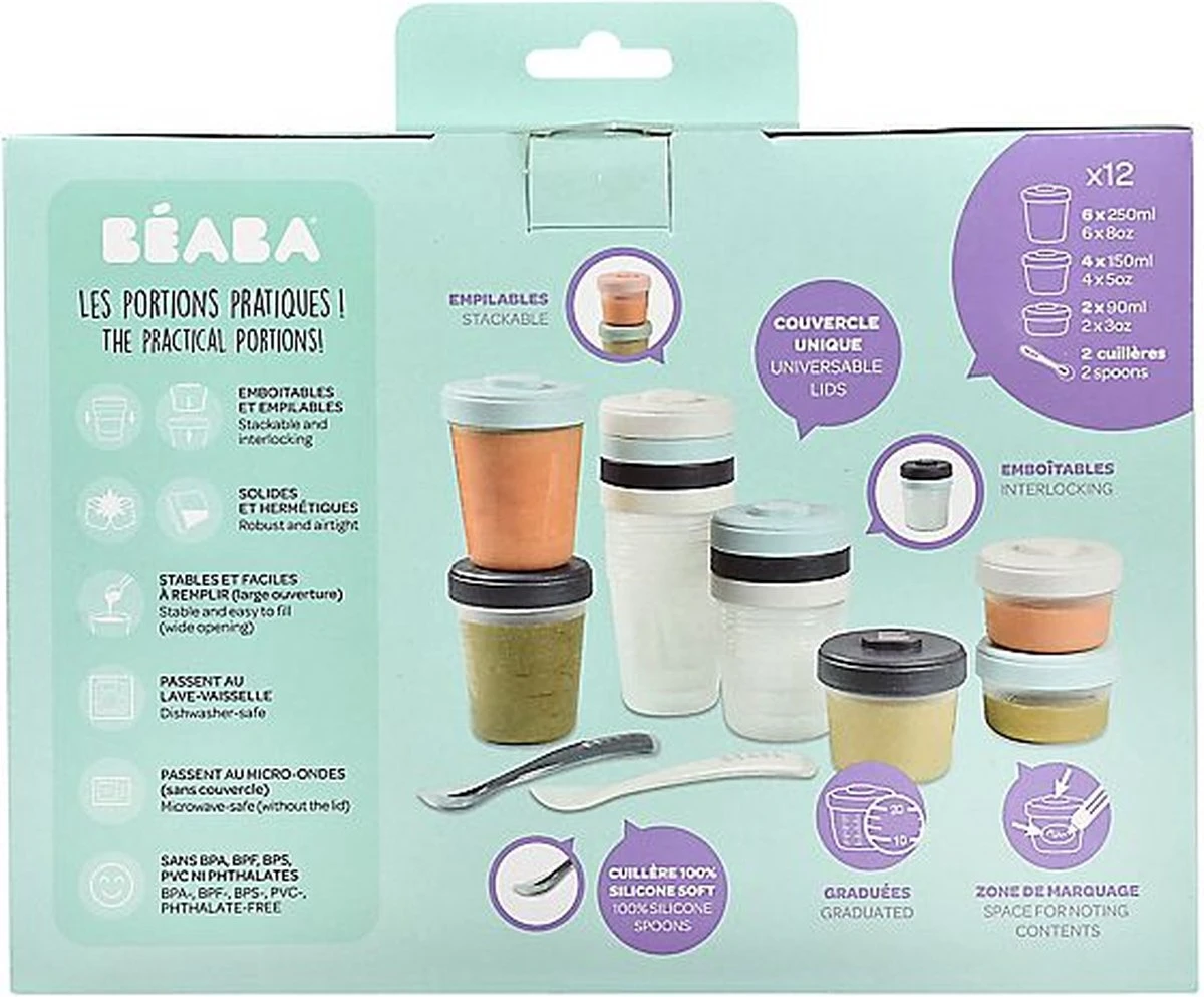 Beaba – 12 Pots De Conservation Super Mignons Et 2 Cuillères Pour Les Aliments Pour Bébé