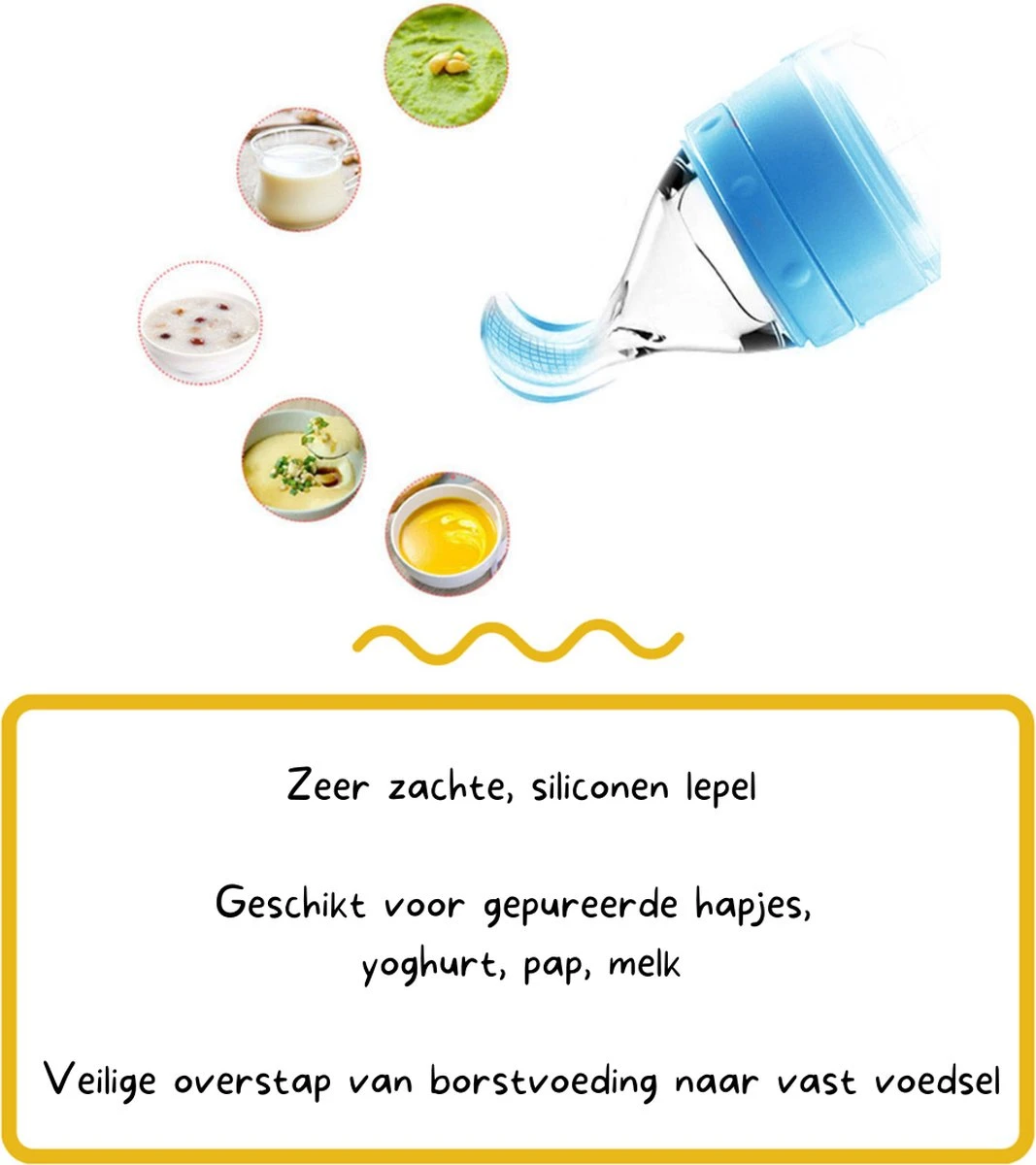 La conception du biberon en silicone facilite le pressage du biberon afin que vous puissiez distribuer la quantité de nourriture souhaitée sur la cuillère et nourrir le bébé de manière pratique et propre.