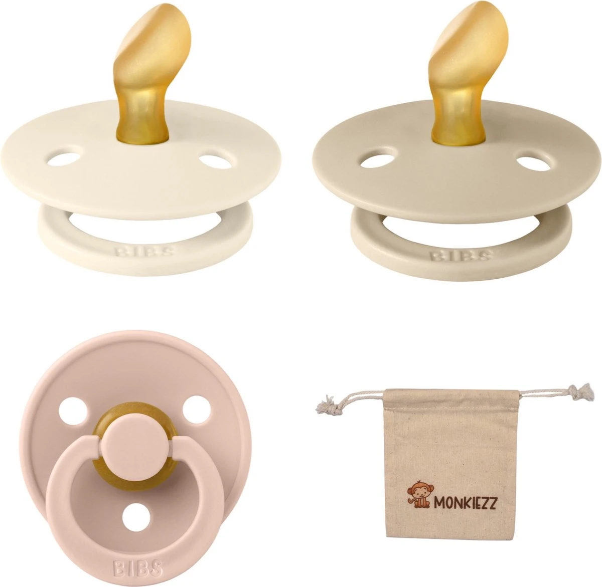 Bibs Sucettes Dental Anatomique 6-18 Mois- Set 3 Pièces- Ivoire, Vanille, Blush – + Etui Tétine Monkiezz – Orthodontique- Anatomique- Taille 2