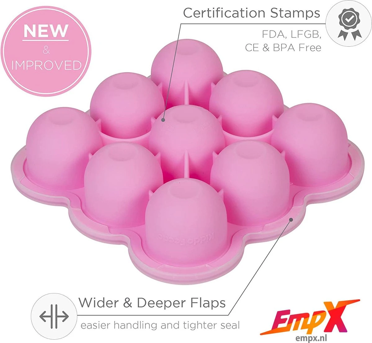 Aliments pour bébés : les plateaux pour bébés sont parfaits pour toutes sorte de préparations, plus besoin de gaspiller la nourriture. Le plateau comprend 9 portions qui chacun contient la quantité idéale de nourriture adaptée à un bébé/enfant. Le plateau souple et anti-adhésif permet de sortir et de décongeler très facilement la portion congelée. Le couvercle transparent retient les saveurs et conserve plus longtemps la fraîcheur des aliments congelés pour bébés. Une façon très simple de garder la nourriture de votre bébé fraîche en un tour de main.