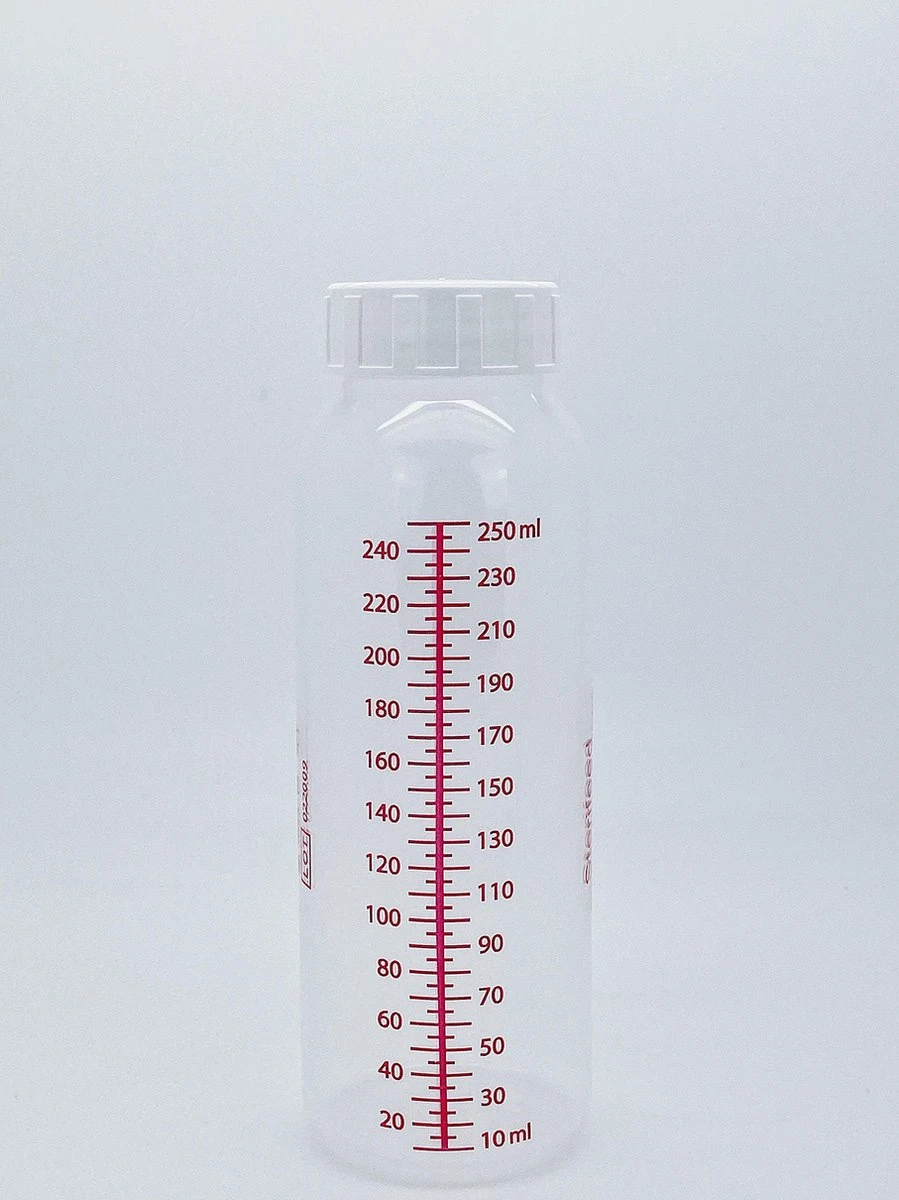 Ce biberon réutilisable pour la conservation du lait maternel de Sterifeed est en polypropylène et a une contenance de 250 ml. Ces bouteilles réutilisables peuvent être utilisées immédiatement après le déballage et n’ont pas besoin d’être nettoyées. Ces biberons conviennent à l’alimentation, mais aussi au stockage, à la collecte, au transport ou à la congélation du lait maternel. Ils peuvent être conservés au koelkast ou au congélateur.