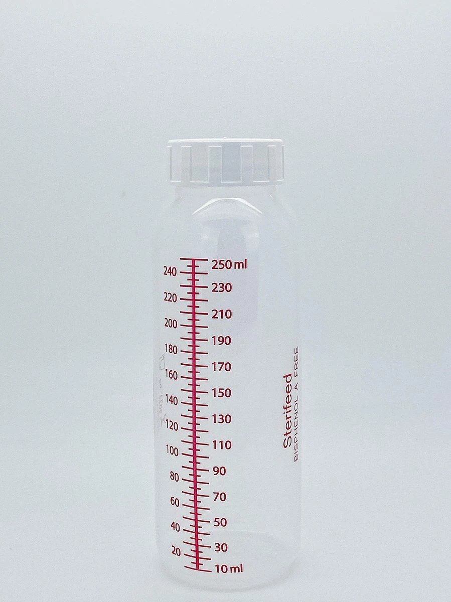 Sterifeed Sterifeed de stockage de lait maternel ont une échelle nettement marqué de telle sorte que la quantité de lait exprimé ou introduit peut être mesuré avec précision. Grâce au col universel du biberon, toutes les tétines s’adaptent et le biberon peut être utilisé avec n’importe quel tire- lait Medela, Ardo ou Ameda . Après utilisation, le flacon peut être nettoyé / stérilisé à nouveau pour être réutilisé.