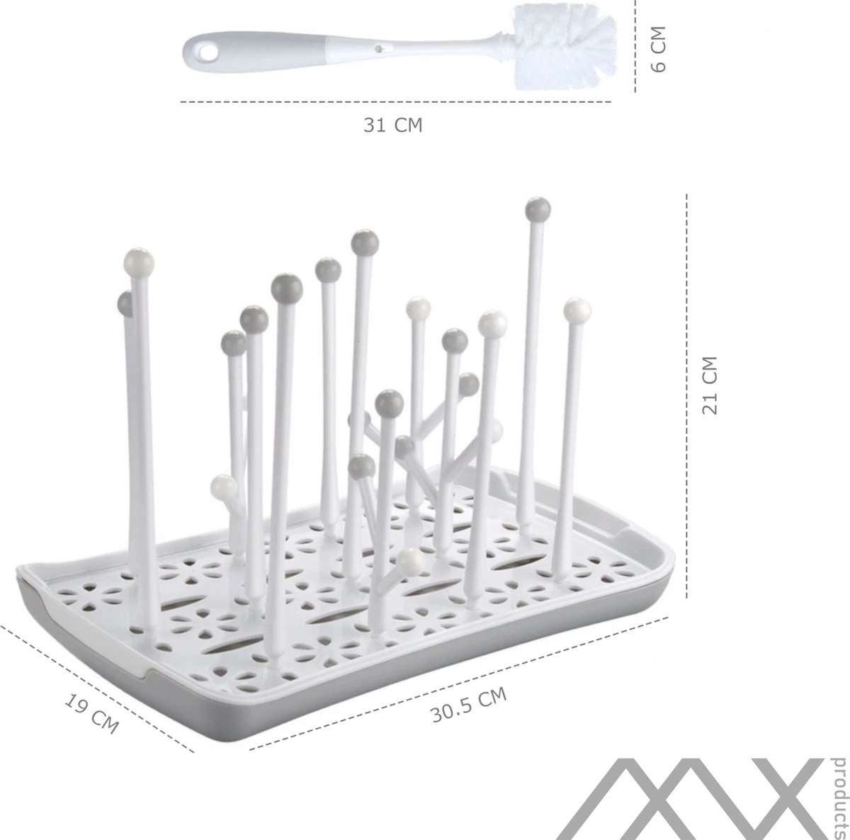 Voulez-vous sécher vos biberons en toute sécurité et en même temps avoir une cuisine bien rangée?Commandez dès maintenant notre sèche-bouteilles avec brosse.
