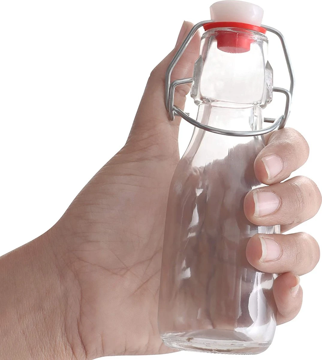 - 12 bouteilles Swing Top : notre lot comprend 12 bouteilles vides de 100 ml pour le remplissage. Ils mesurent 13 cm de haut et ont un couvercle hermétique. Le couvercle garde les liquides frais à l’intérieur. Ils vont au lave-vaisselle et sont étanches. La fermeture à anse est amovible pour un nettoyage facile. Le bouchon est en plastique et le joint est en silicone. N’utilisez pas d’eau bouillante avec ces bouteilles. Nous vous recommandons de sécher en position verticale.