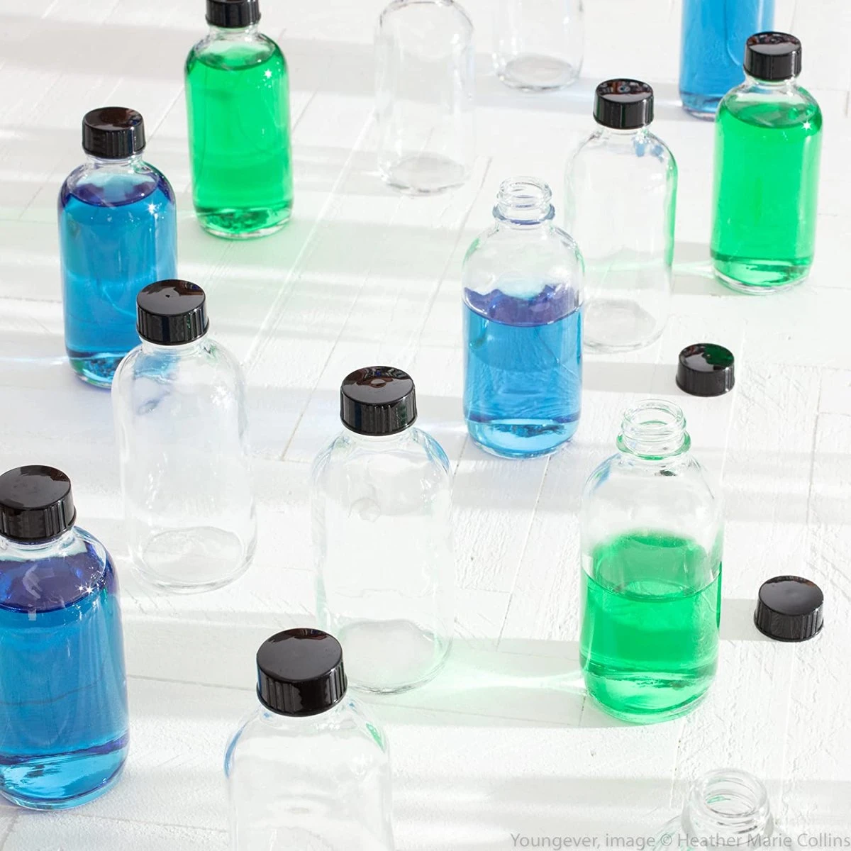 Bouteilles Lot De 16 Flacons En Verres De 60 Ml Avec Couvercles, Verre Ambré, Récipient En Verres , Boîte Vide, Récipient Rechargeable Pour Cosmétiques, Crèmes, Lotions, Huiles Essentielles (transparent)