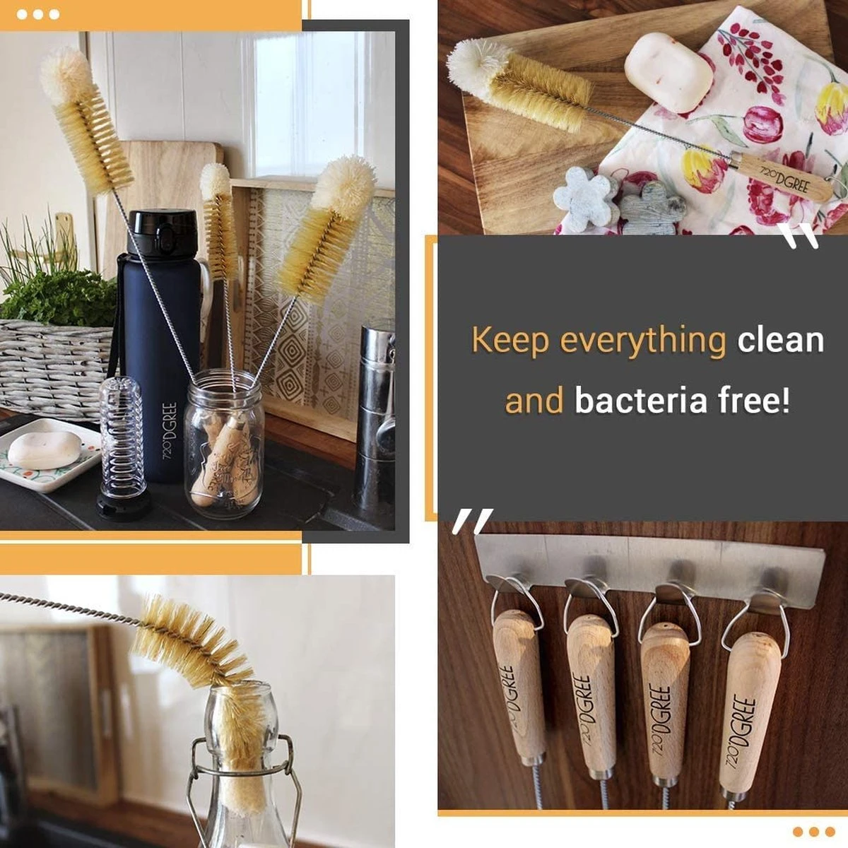 - BROSSE À BOUTEILLES 720° DGREE – La solution pour un nettoyage sans rayures et sans effort de toutes sortes de biberons, par exemple biberons, biberons, carafes, verres, tasses, etc., quel que soit le matériau, verre, plastique ou acier inoxydable – Tout devient hygiéniquement propre ! Les poils naturels avec la tête en laine douce assurent un nettoyage en profondeur, sans rayures et en même temps hygiénique. Sans plastique. Pas de plastique. Pas de plastique. Sans BPA.