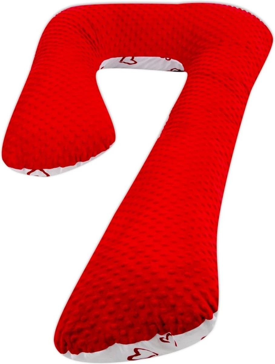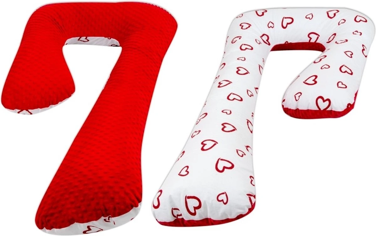 Un coussin d’allaitement en tissu minky et coton avec des coeurs rouges – couleurs rouges de Vikingchoice. Le coussin de soutien peut être utilisé dans plusieurs situations et a une forme en 7.
