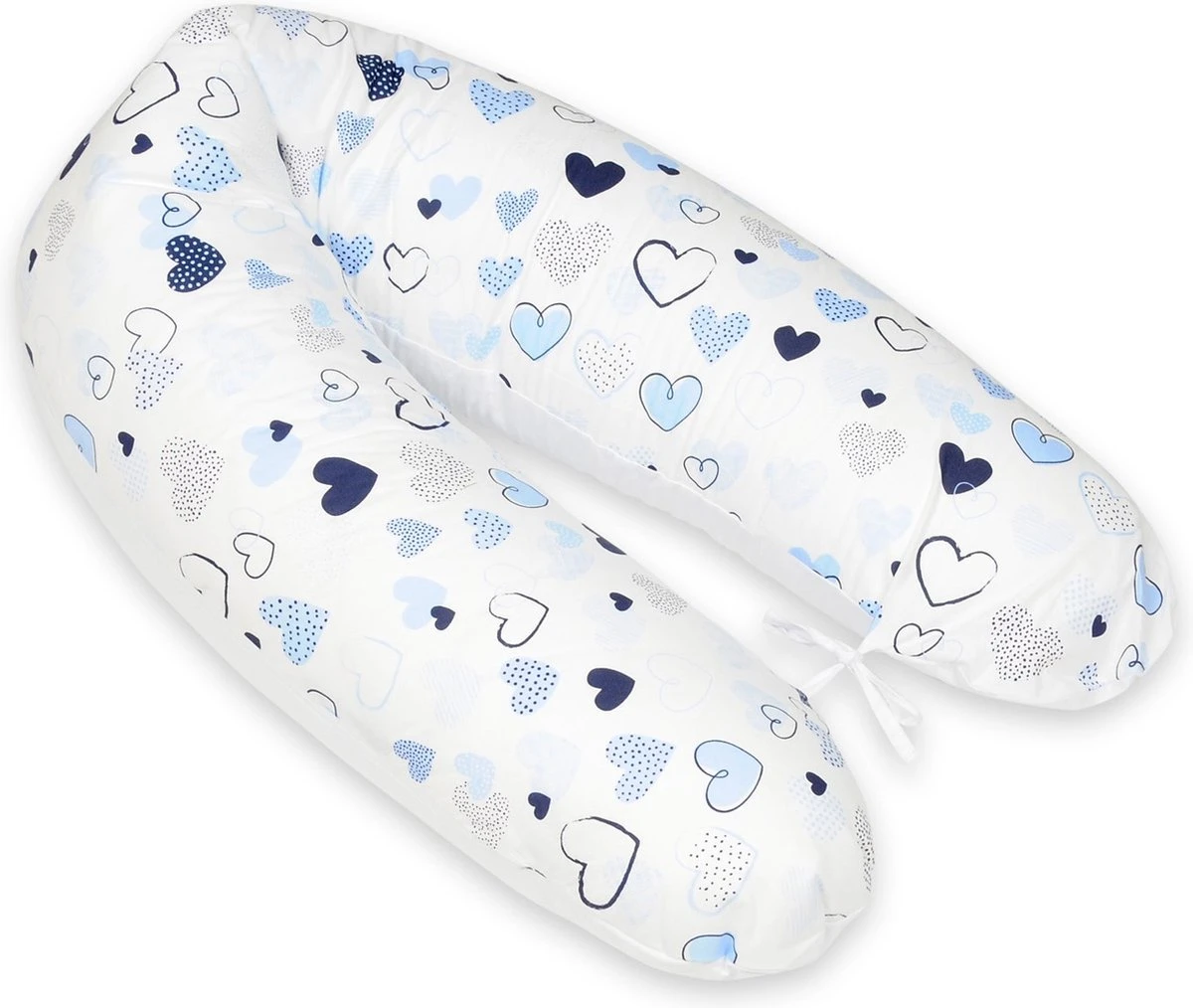 Un coussin d’allaitement 100% coton avec des coeurs bleus – couleurs blanches de Vikingchoice. Le coussin de soutien peut être utilisé dans plusieurs situations et a une longueur de 145 cm.
