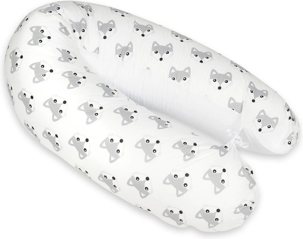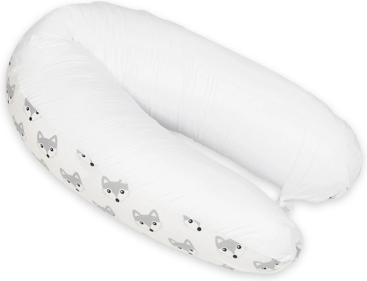 Un coussin d’allaitement 100% coton avec des renards – couleurs blanches de Vikingchoice. Le coussin de soutien peut être utilisé dans plusieurs situations et a une longueur de 145 cm.