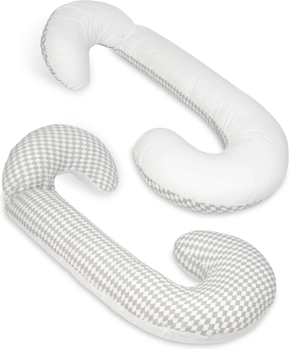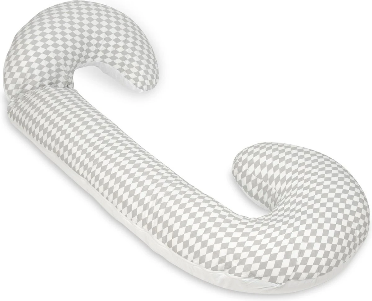Un coussin d’allaitement 100% coton avec diamant blanc/gris – couleurs blanches de Vikingchoice. Le coussin de soutien peut être utilisé dans plusieurs situations et a une forme en C.