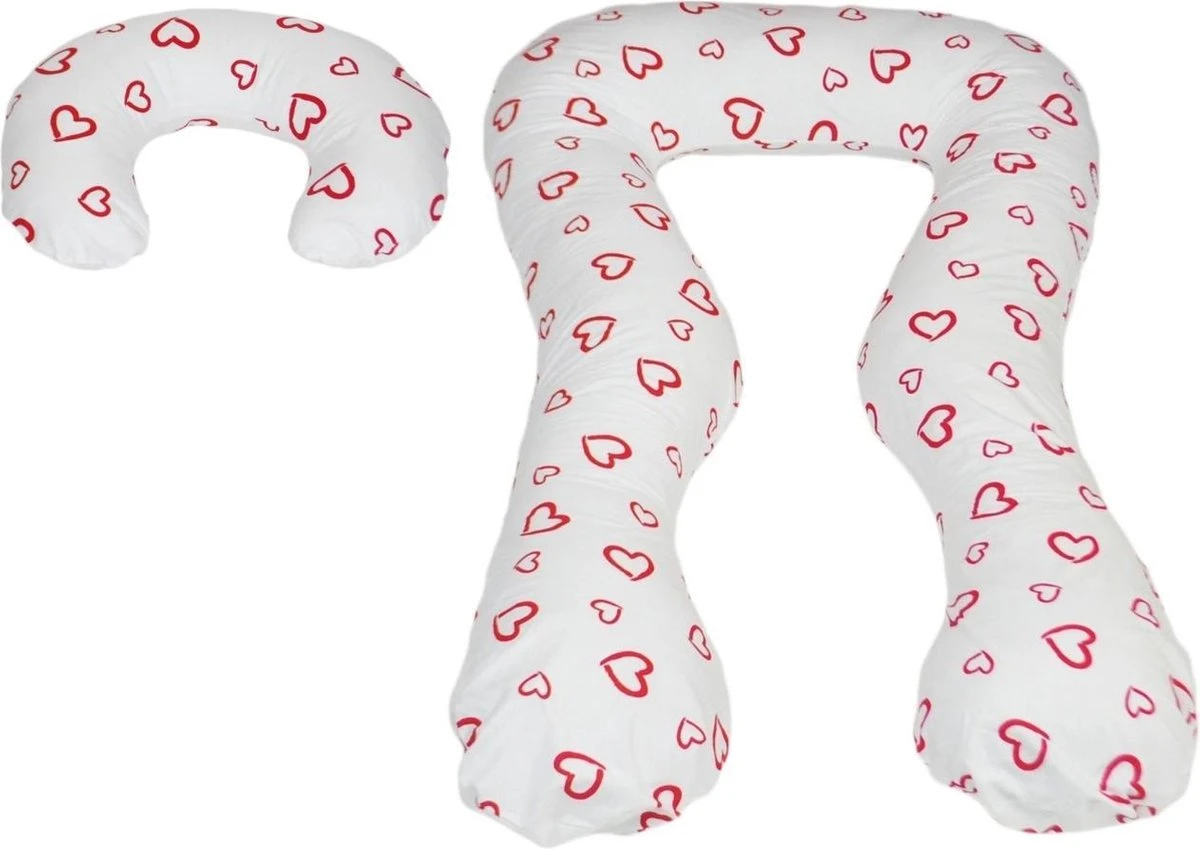 Coussin D’allaitement – Coussin De Grossesse – Ensemble – 100% Coton – 300 Cm – Rouge Avec Motif Cœur Blanc