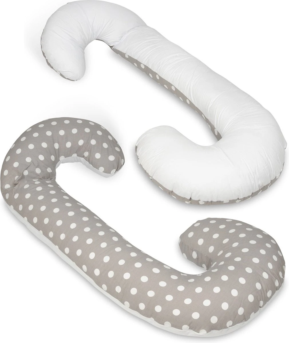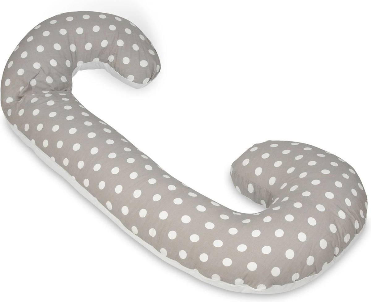 Un coussin d’allaitement 100% coton à pois sur les couleurs gris – blanc de Vikingchoice. Le coussin de soutien peut être utilisé dans plusieurs situations et a une forme en C.