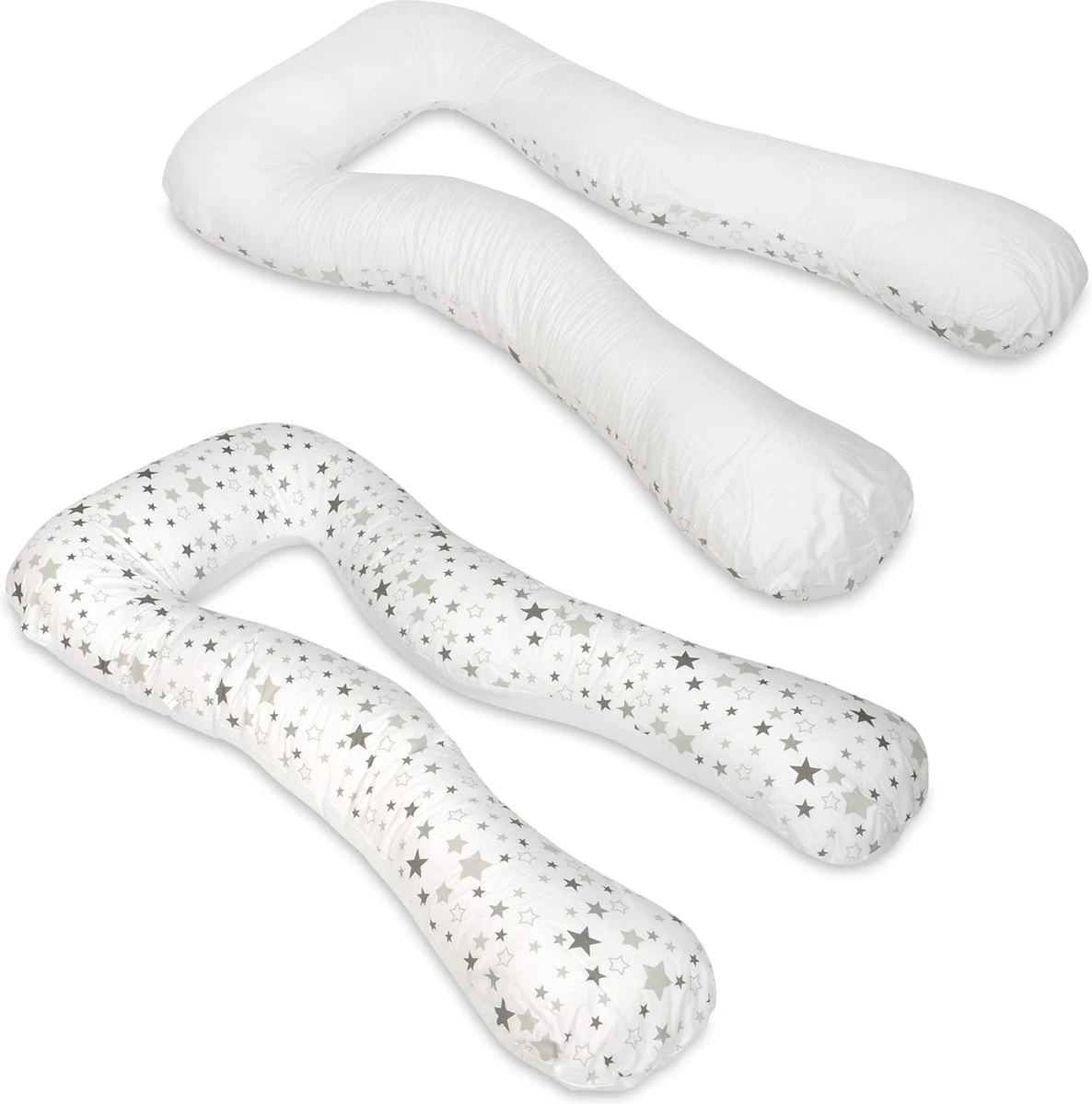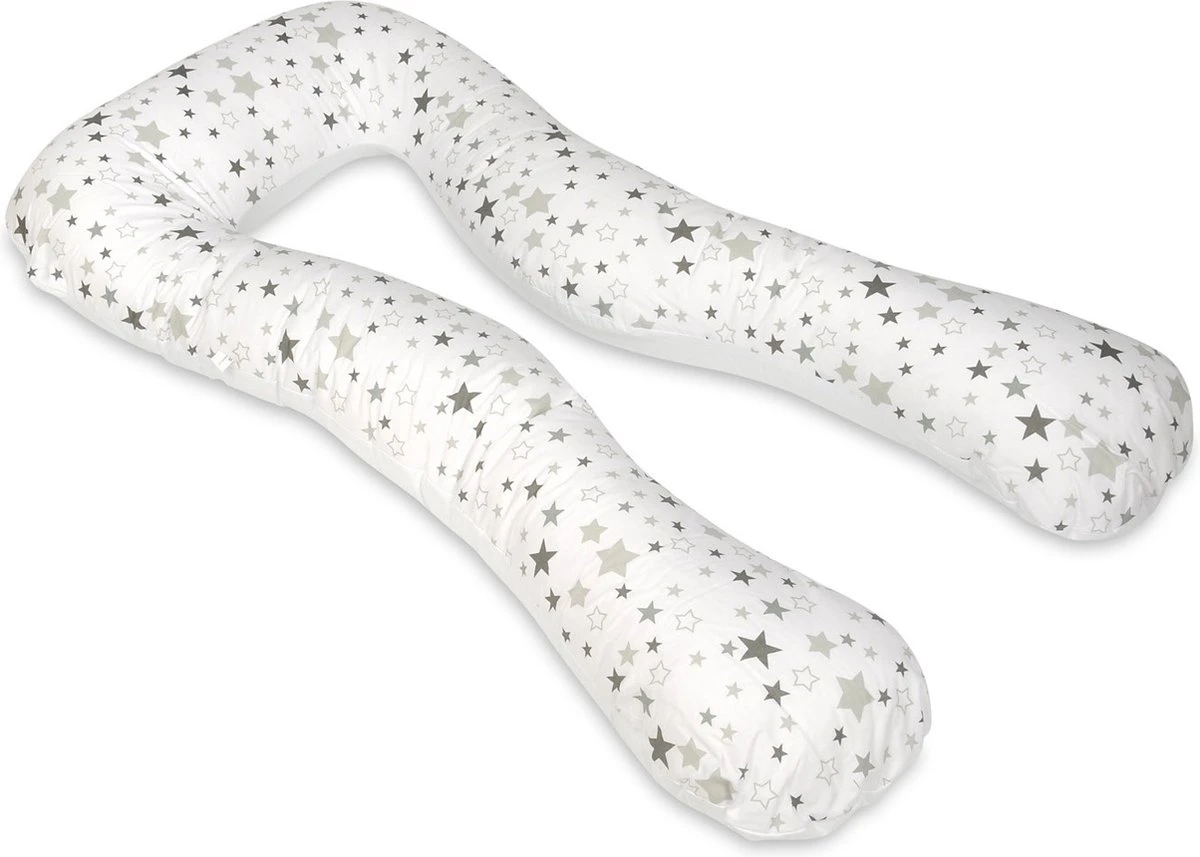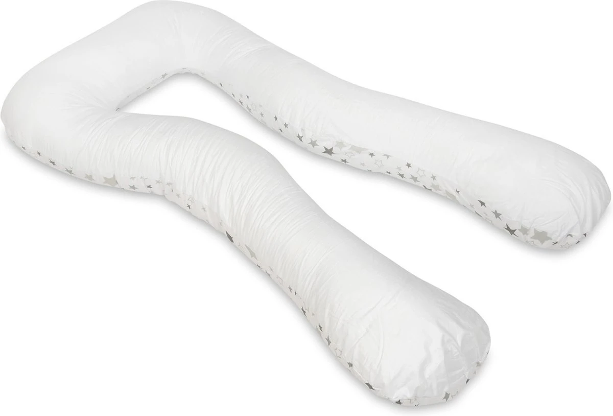 Un coussin d’allaitement 100 % coton avec des étoiles blanches/grises sur blanc – couleurs blanches de Vikingchoice. Le coussin de soutien peut être utilisé dans plusieurs situations et a une forme en U.
