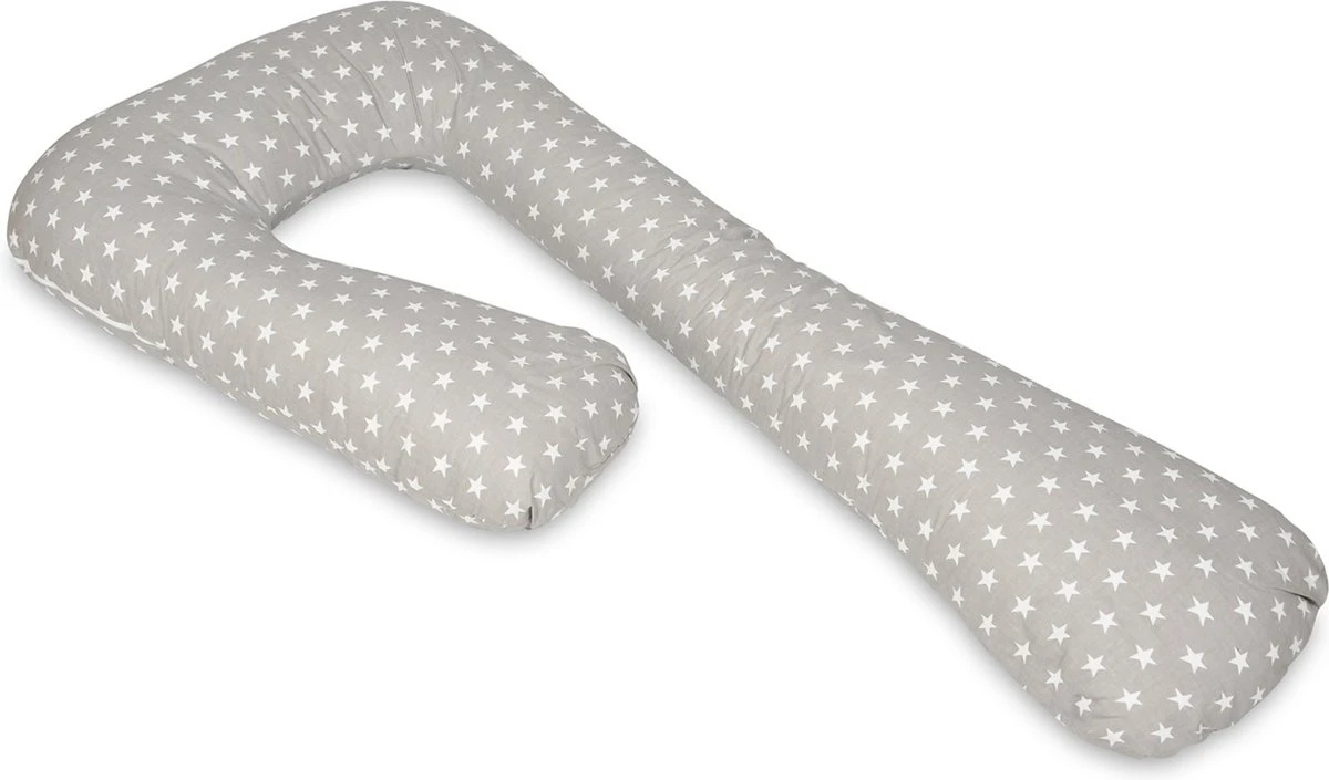 Un coussin d’allaitement 100% coton aux couleurs d’étoiles blanches et grises de Vikingchoice. Le coussin de soutien peut être utilisé dans plusieurs situations et a une forme en U.