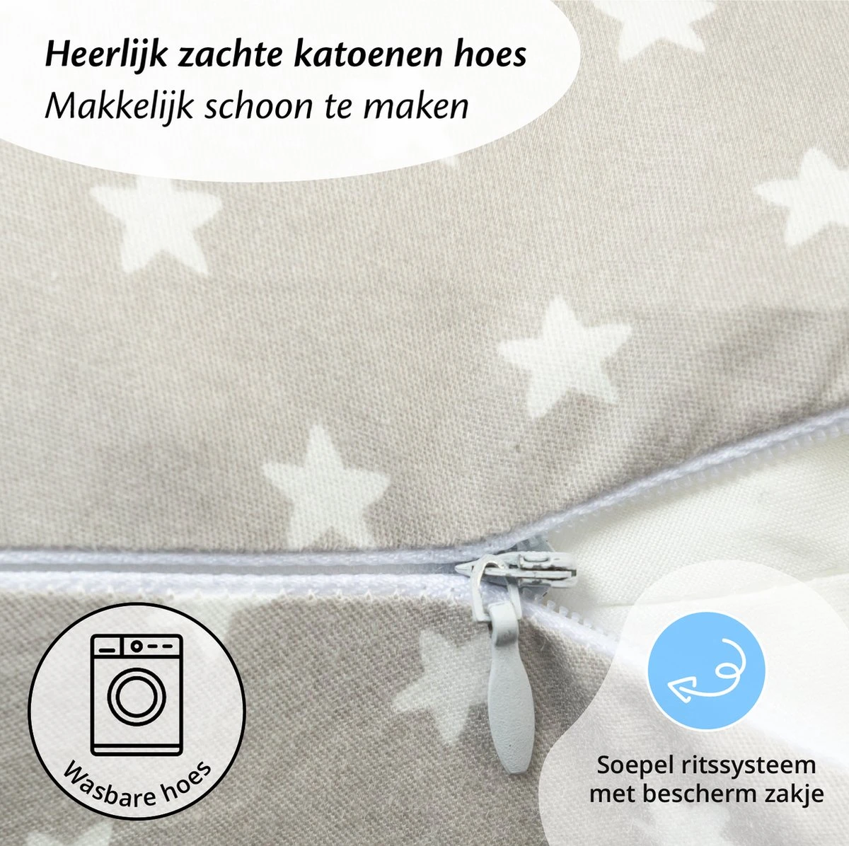 Coussin D’allaitement Ella – Coussin De Grossesse – Coussin De Couchage Latéral – Grijs Avec étoiles