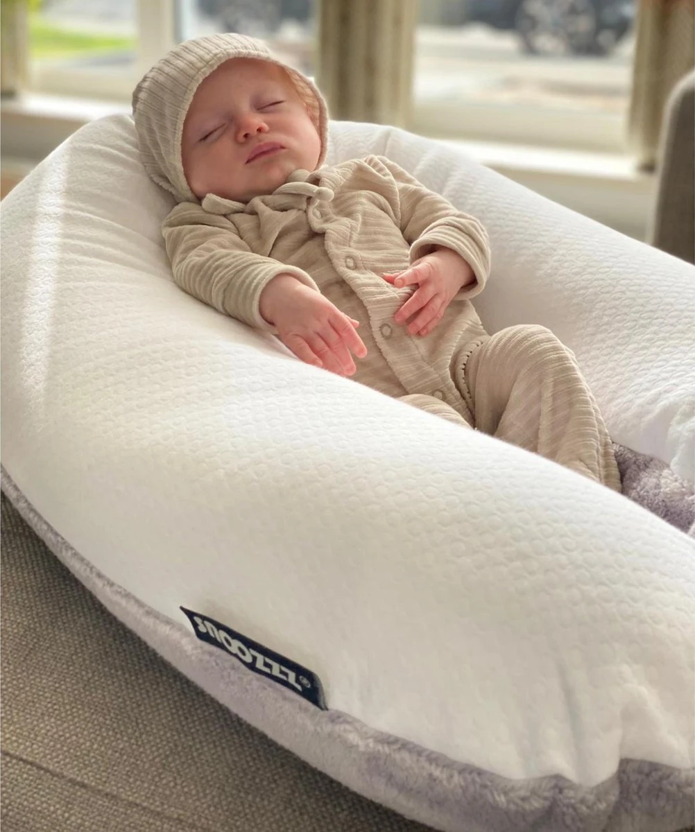 Pour le développement de votre bébé, il est important que vous le mettiez régulièrement sur le ventre, bien sûr uniquement sous surveillance. La position couchée stimule le cou et les muscles abdominaux du bébé, ce qui est important pour son développement. L’oreiller d’alimentation Snoozzz est un excellent outil pour cela.