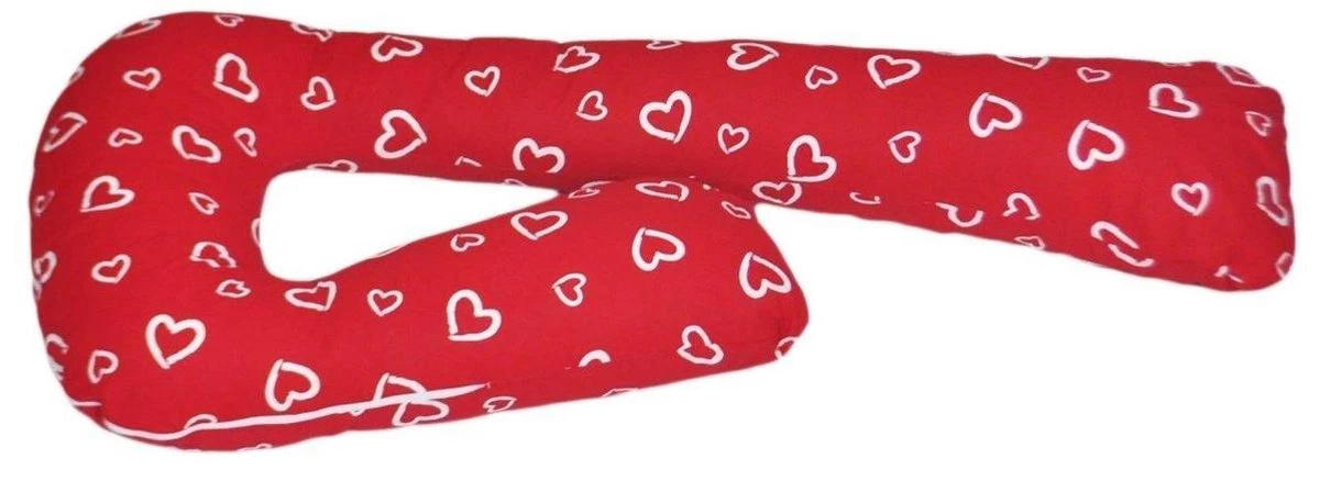 Coussin De Maternité – Coussin D’allaitement – 100% Coton – 235 Cm – Rouge Avec Motif Cœur Blanc