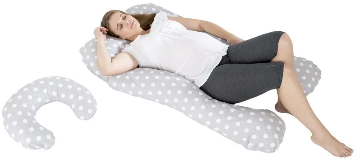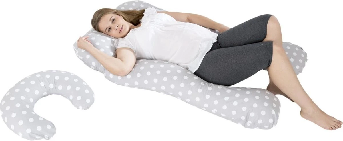 Coussins De Maternité | Forme En U 300 Cm Avec Coussin D’allaitement | | Gris Avec Des Sphères Blanches