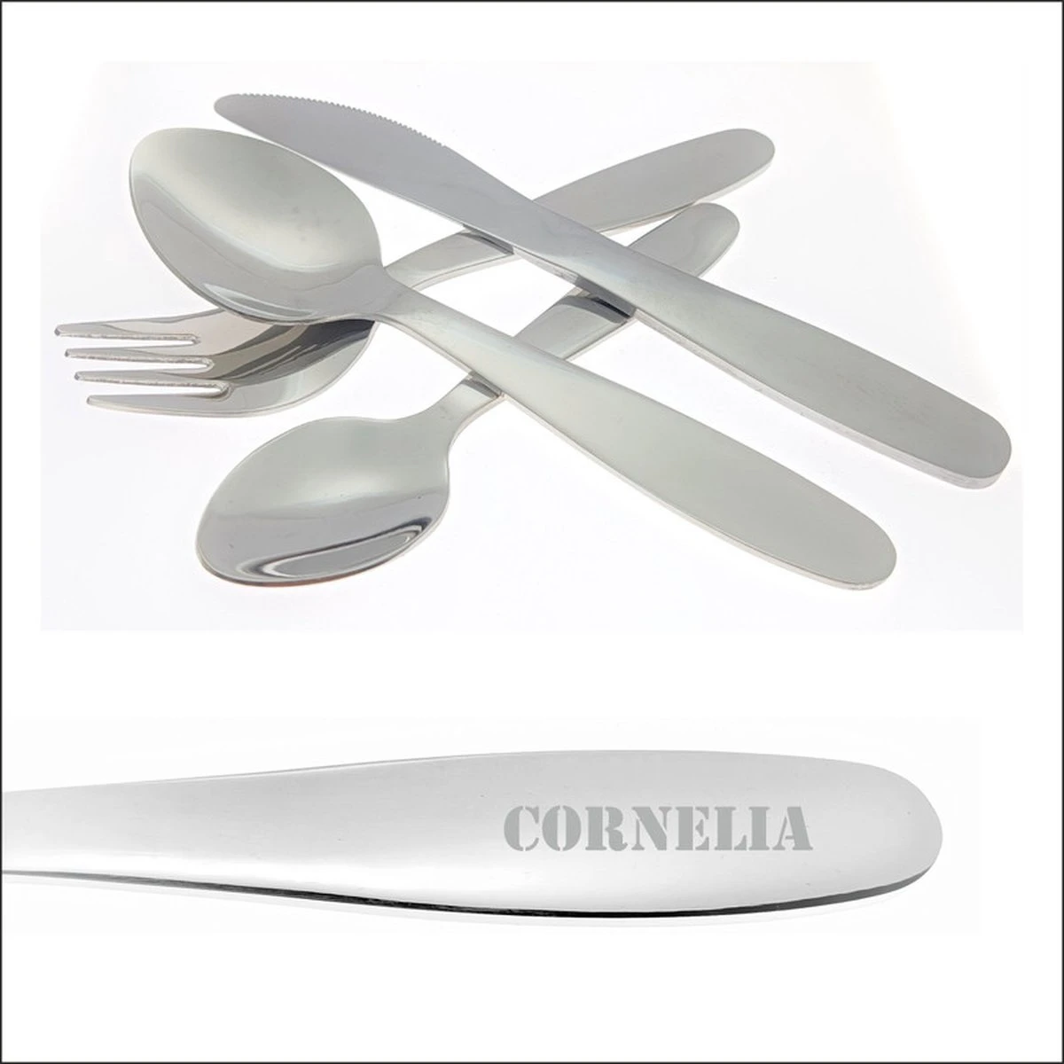 Rendez le repas encore plus amusant avec les plus beaux couverts pour enfants avec un naam libre gravé sur toutes les parties des couverts. Un cadeau amusant, personnel et intemporel. Les couverts pour enfants sont un beau cadeau pour une naissance, un baptême, une confirmation, une communion ou un anniversaire. De nombreuses personnes âgées ont encore leur premier service de couverts en guise de rappel. Des couverts spécialement conçus pour les enfants assurent une meilleure motricité.