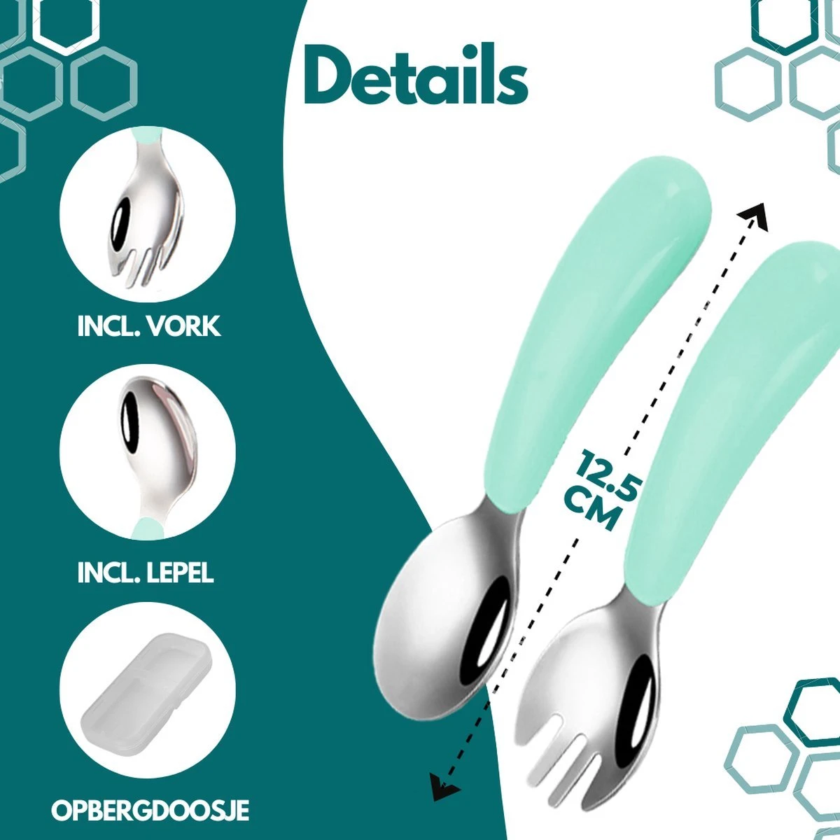 Couverts Pour Enfants Vert | Comprend Une Boîte De Rangement Pratique | Fourchette Pour Enfants Et Cuillère Pour Enfants | Couverts Pour Tout-petits | Couverts Bébé | Cuillère Bébé