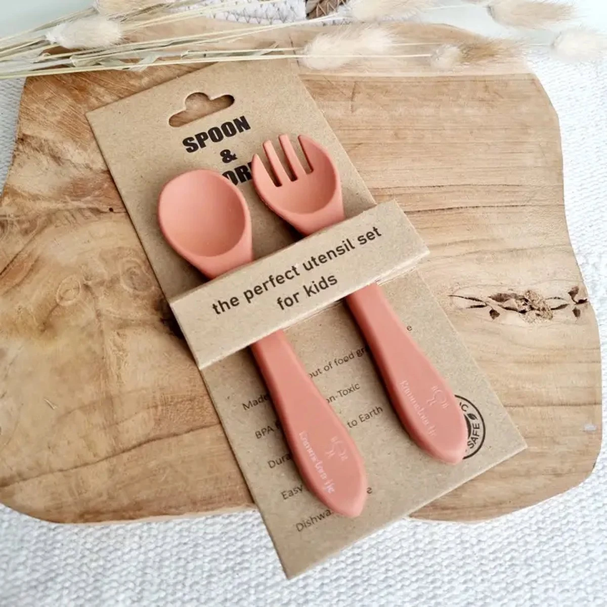 Cet ensemble de couverts en silicone pratique est parfait pour apprendre à manger.