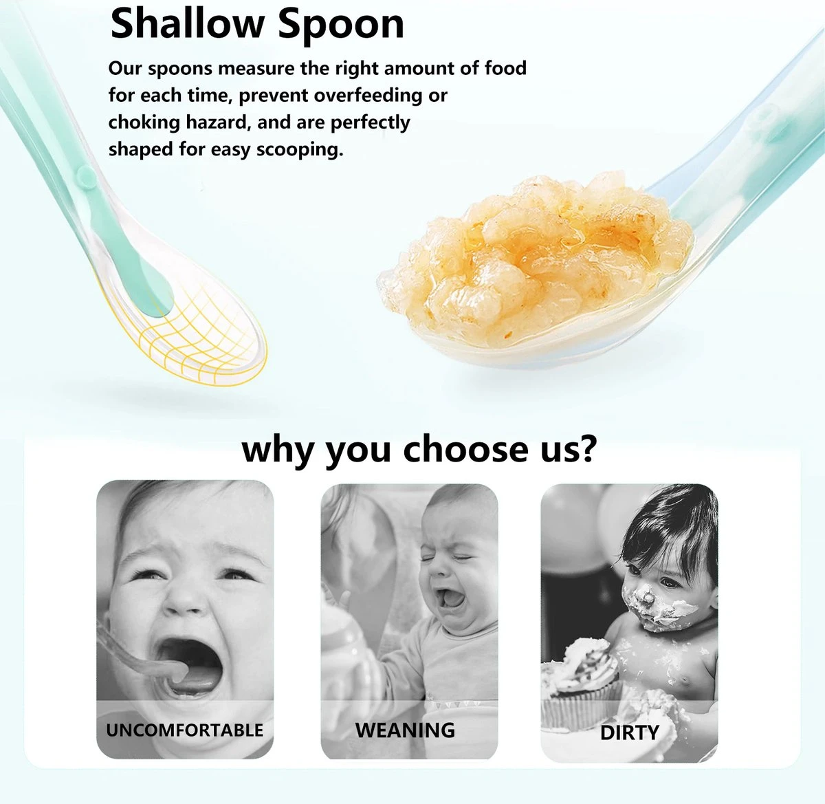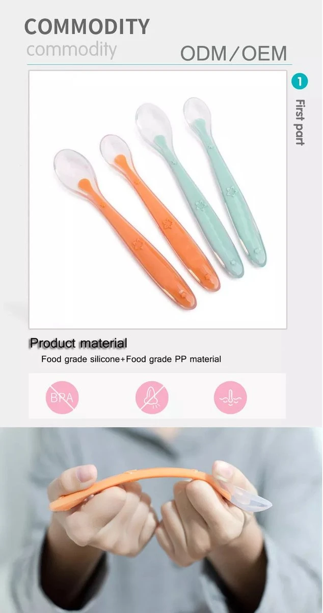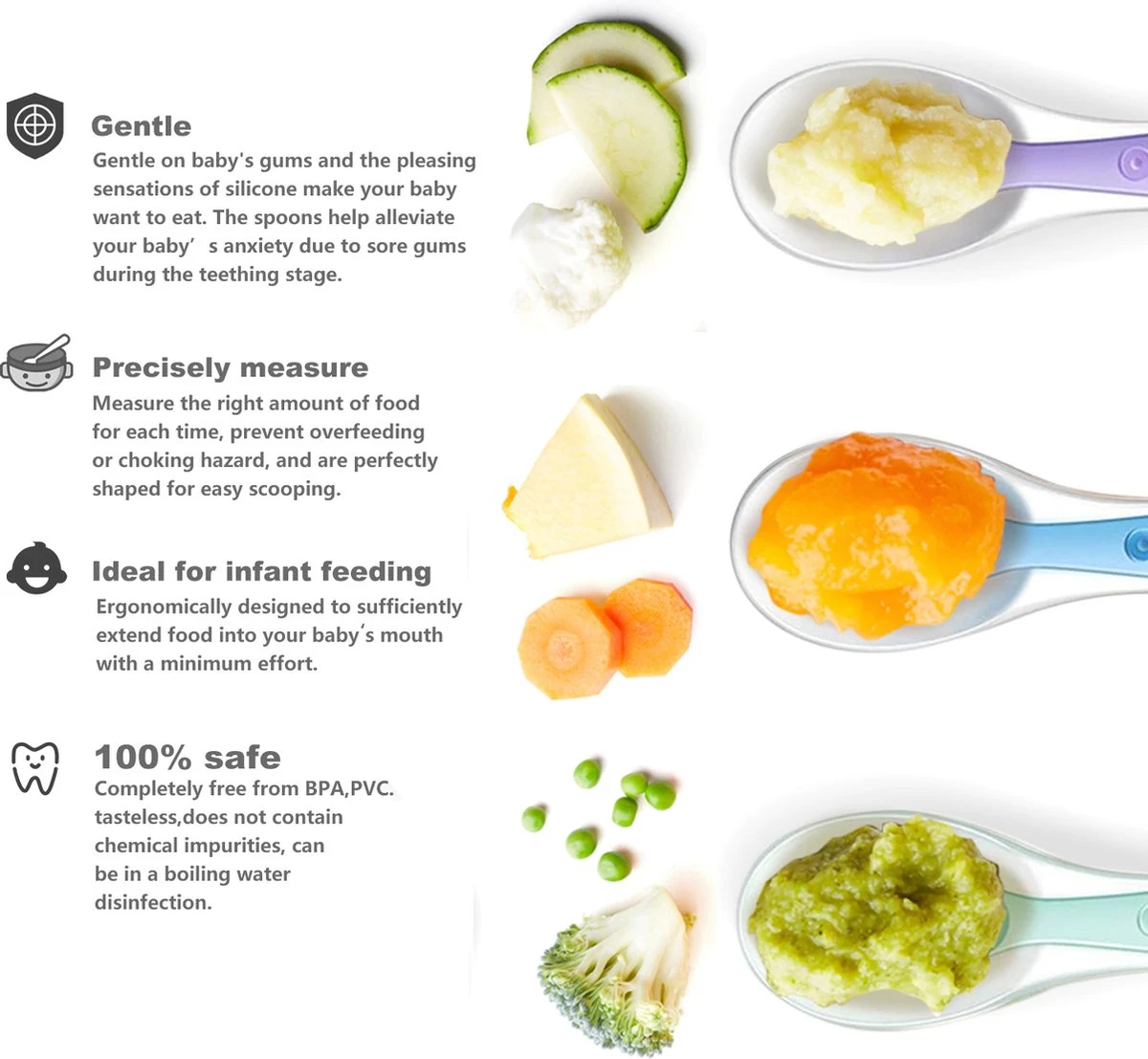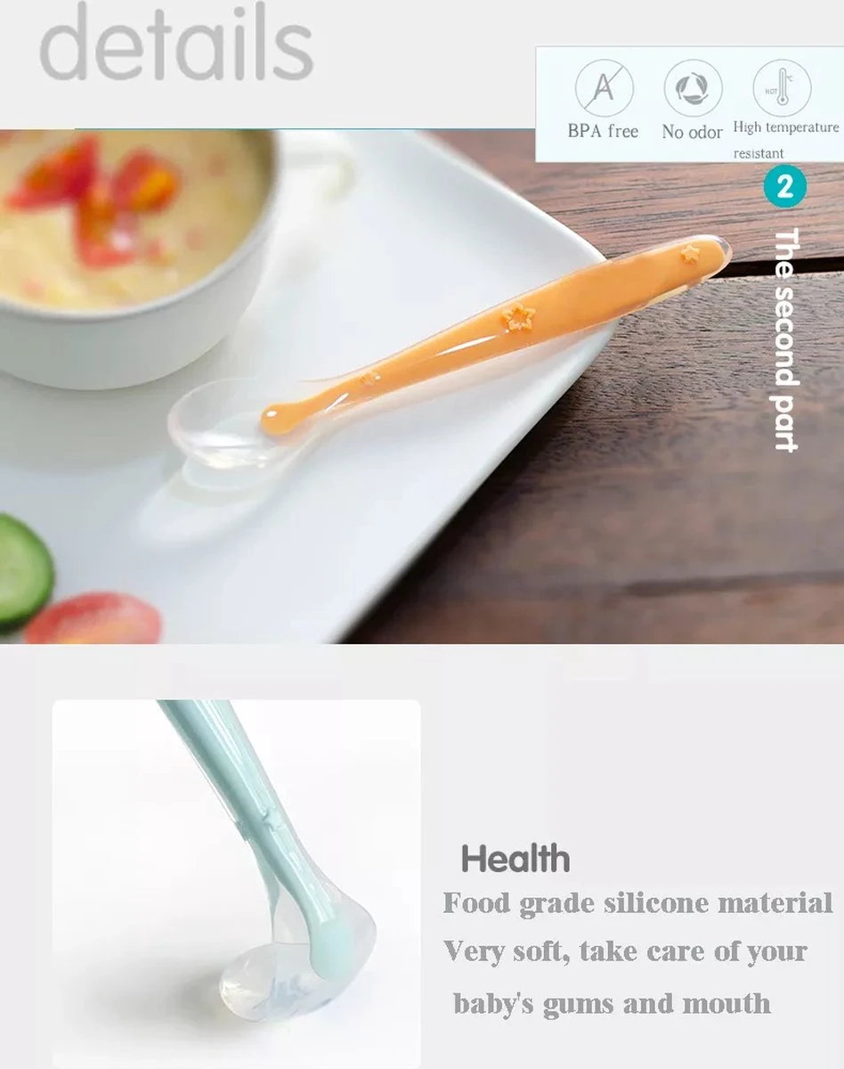 Matériau : 100 % silicone Tolérance de température : -20°C – 230°C Cuillère flexible Fabriquée en matériau silicone doux et souple, donc sans danger pour la bouche et les gencives de bébé. SûrMatériau de qualité alimentaireSans bisphénol-ARépond aux normes de sécurité nationales et internationales