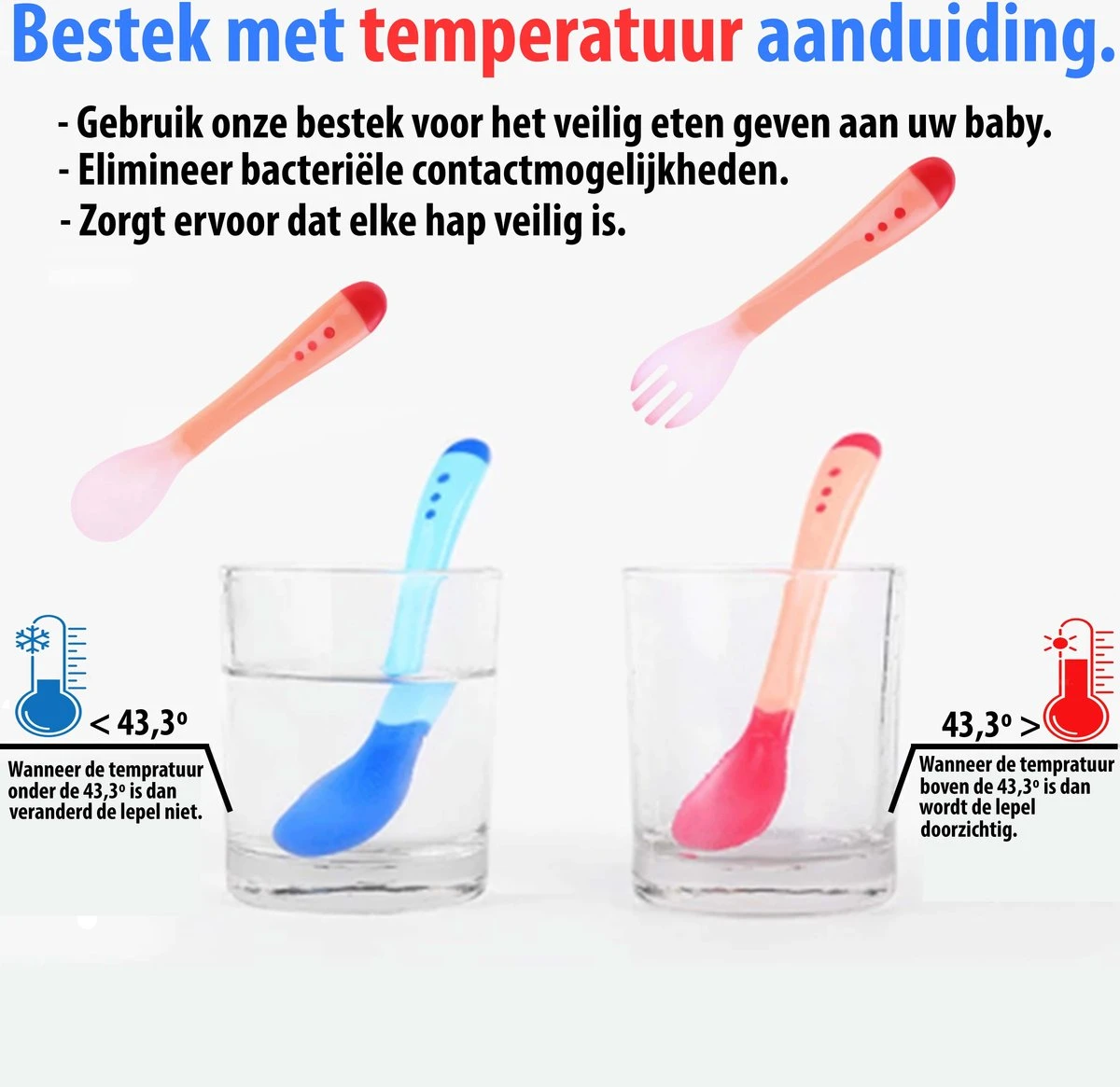 Avec ces cuillères pour bébé sensibles à la chaleur, vous n’aurez plus jamais à vous soucier de la température des aliments. Si la température des aliments est supérieure à 37°C, la couleur des cuillères devient transparente. De cette façon, vous savez toujours si les aliments ont suffisamment refroidi. La cuillère est douce pour la bouche et les gencives des enfants et donc idéale pour les premières bouchées. Grâce à sa forme étroite et adaptée, la cuillère s’adapte facilement dans les petites bouches. Le nettoyage des couverts est très simple au lave-vaisselle. Ces couverts conviennent aux enfants à partir de 3 mois. Les couverts sont disponibles en 3 couleurs différentes.