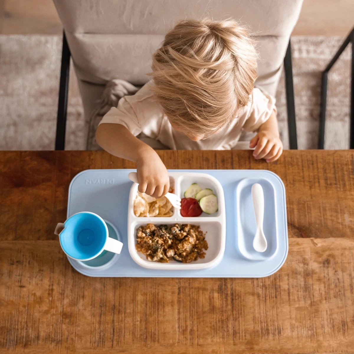 Cet ensemble est facile à entretenir. Il peut aller directement au lave-vaisselle après avoir mangé !