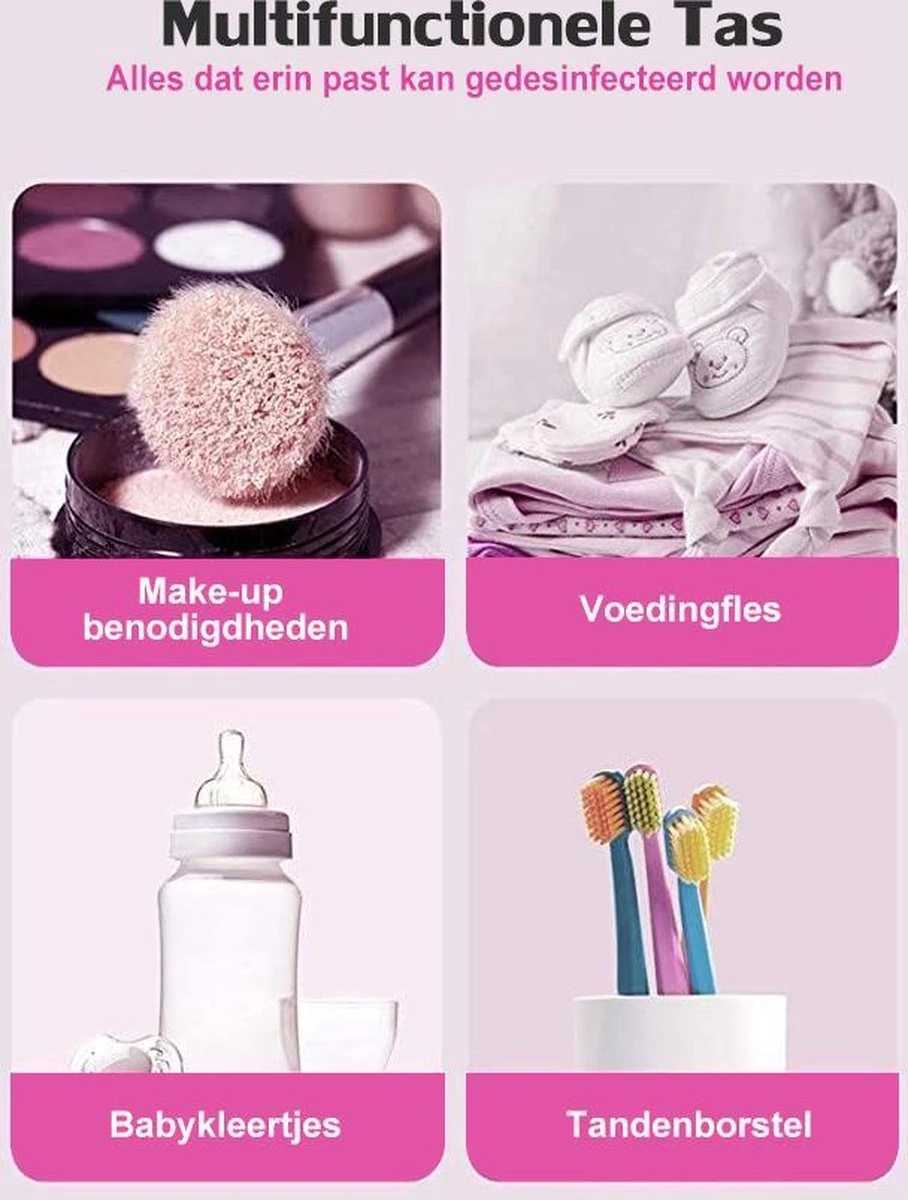 - Informations sur l’effet: la longueur d’onde UV est de 260 Nm – 280 Nm. Après le nettoyage, il ne reste plus de résidus. Lorsque vous êtes sur la route, vous pouvez le mettre dans la valise comme sac pour que vous puissiez profiter de vacances sûres et confortables. Le sac est portable, utile, universel et sain.